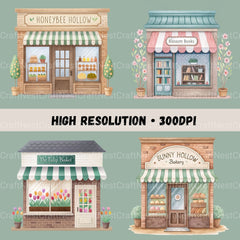 Bloom with this Village Shops Spring 15 Clipart Bundle, featuring spring village shop designs, ideal for seasonal travel crafts.