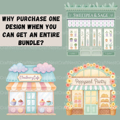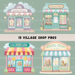 Wonder with this Village Shops Whimsical 15 Clipart Bundle, featuring whimsical shop designs, perfect for enchanted travel crafts.