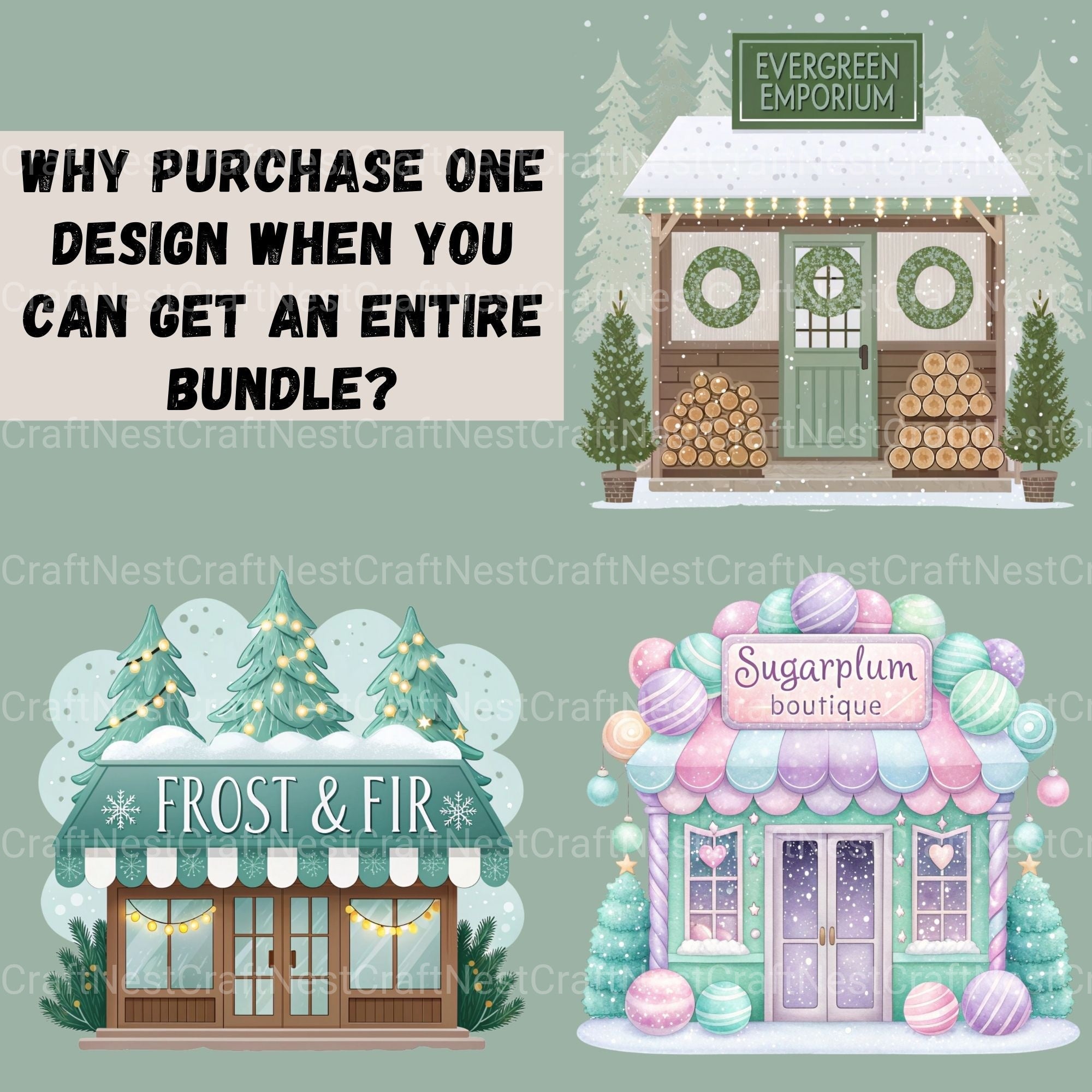 Winter with this Village Shops Winter 15 Clipart Bundle, featuring winter village shop designs, perfect for winter travel crafts.