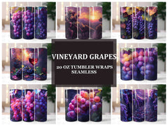 Embrace the elegance of vineyard grapes with our seamless tumbler wrap. The design showcases the rich hues and intricate details of grape clusters, perfect for a refined and nature-inspired look.