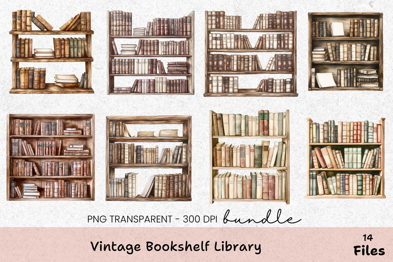 Discover the charm of the Vintage Bookshelf Library Clipart Bundle, a treasure trove of timeless illustrations perfect for enhancing your creative projects. This exquisite collection features a diverse array of classic bookshelf designs, ideal for crafting, scrapbooking, and digital art. Elevate your work with these high-quality, vintage-inspired graphics, perfect for adding a touch of nostalgia and elegance to any project. Unleash your creativity with this versatile clipart bundle, designed to inspire and captivate.
