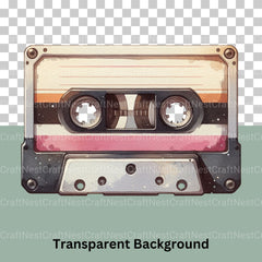 Rewind with this Vintage Cassette Tapes 12 Clipart Bundle, featuring retro cassette designs, ideal for vintage music crafts.