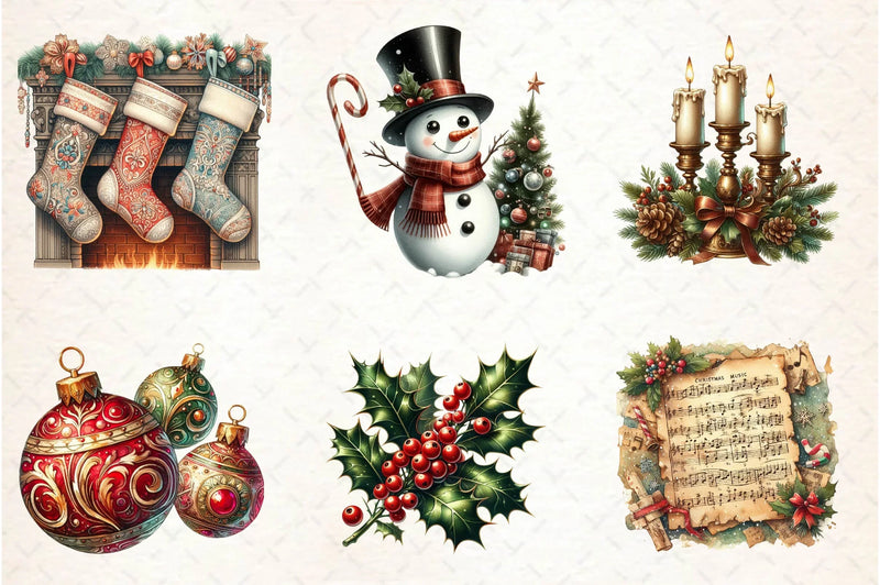Vintage Christmas Clipart Bundle