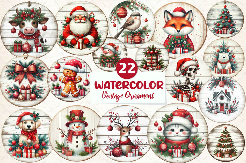 Hang with this Vintage Christmas Ornaments Clipart Bundle, featuring retro ornament designs, perfect for classic Christmas crafts.