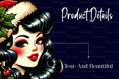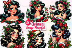 Pose with this Vintage Christmas Pinup Girl Clipart Bundle, featuring retro holiday girl designs, ideal for classic Christmas crafts.