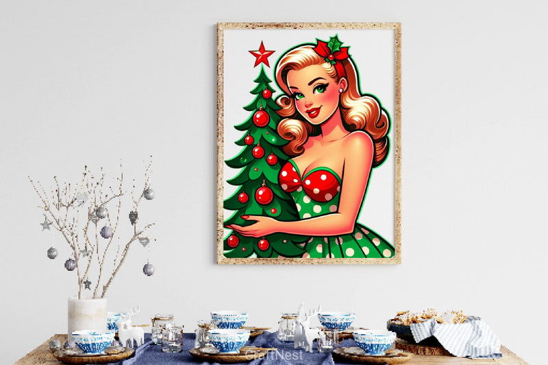 Vintage Christmas Pinup Girl Clipart Bundle 2