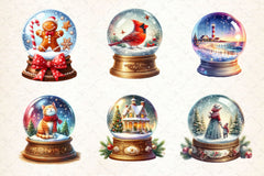 Vintage Christmas Snow Globe Clipart Bundle
