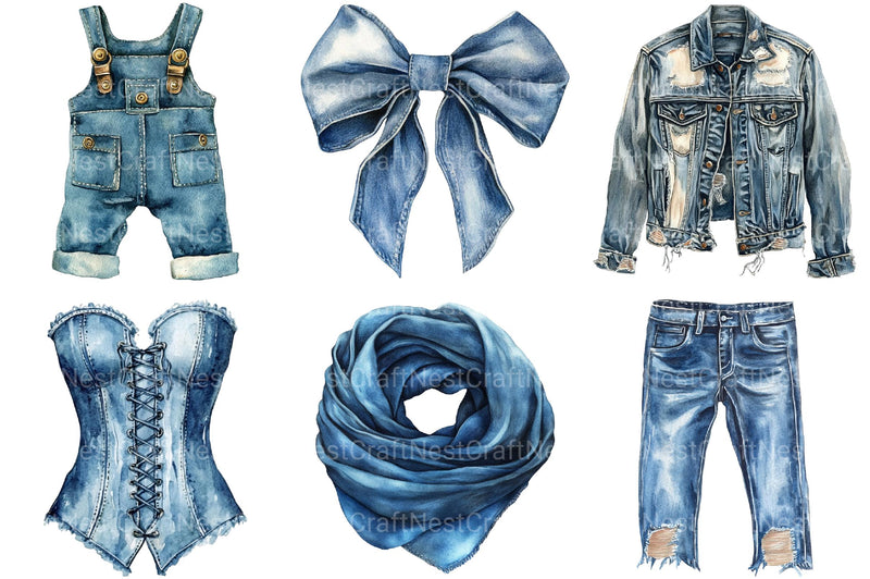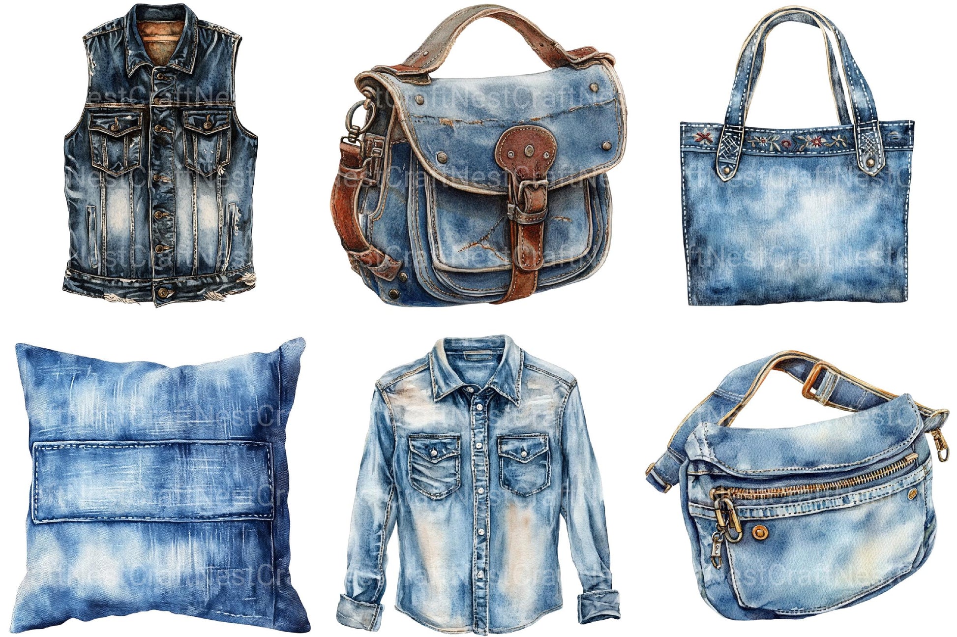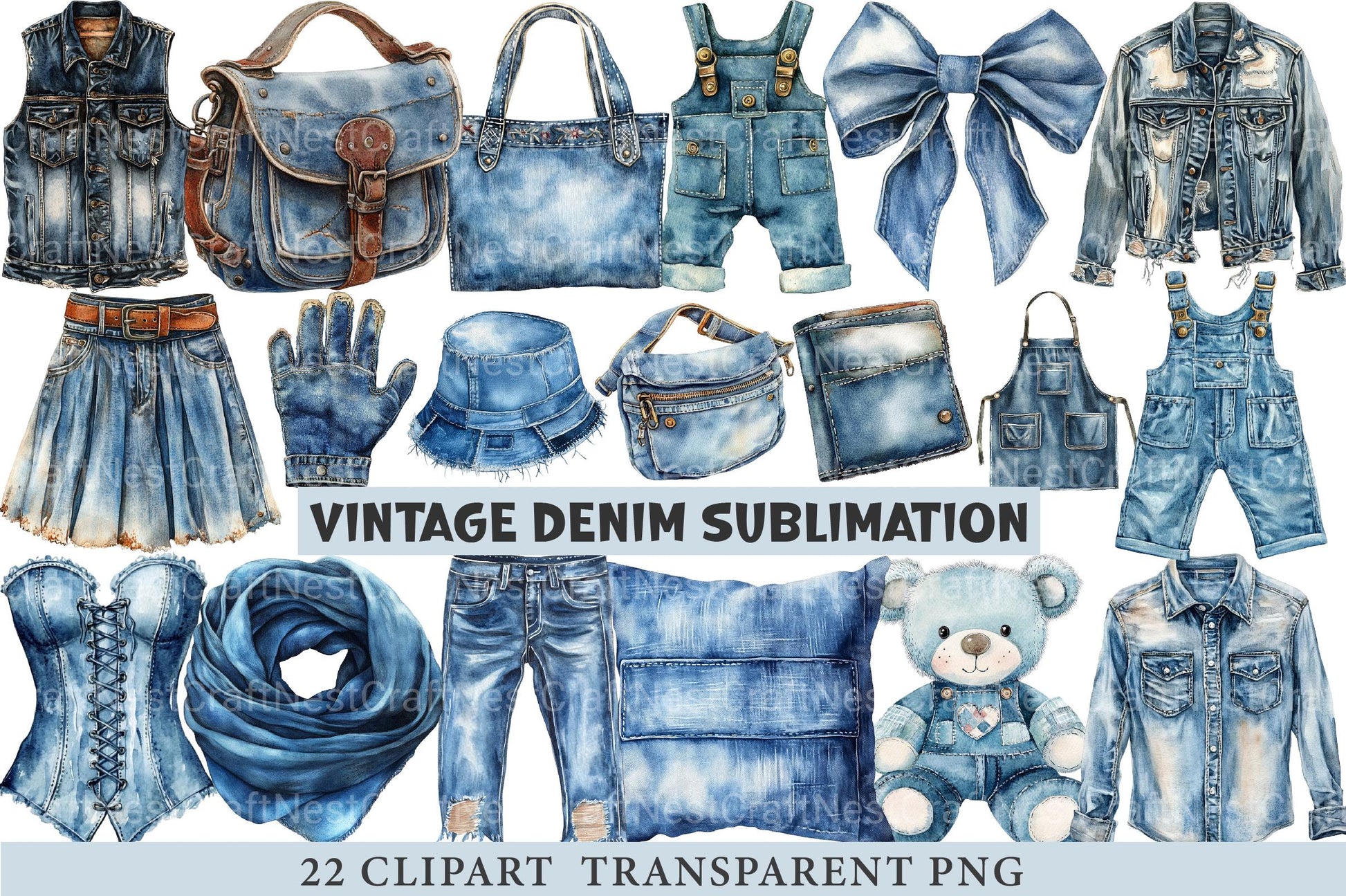 Add style with this Vintage Denim Clipart, featuring denim designs, ideal for vintage crafts.