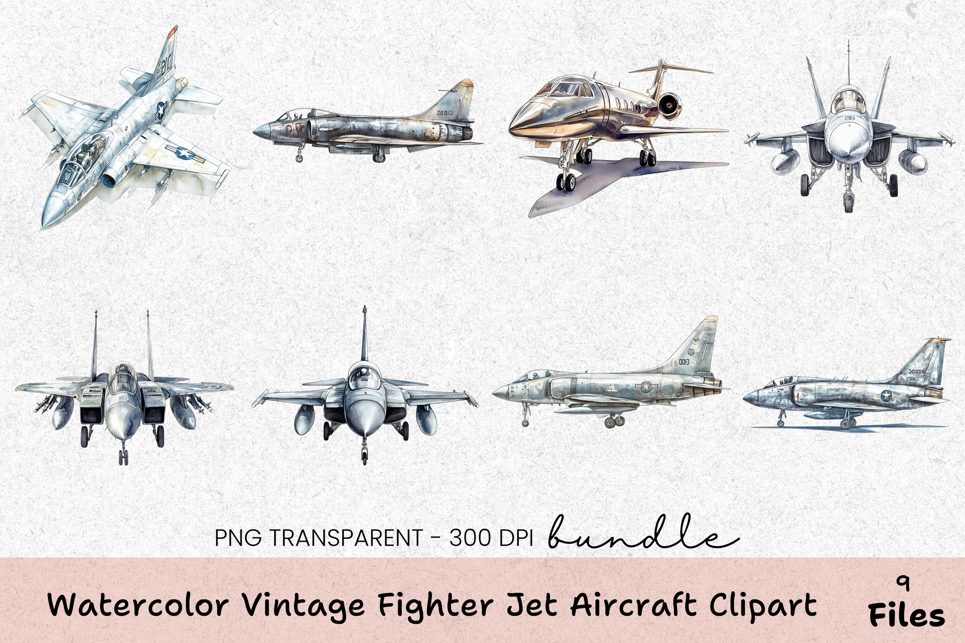 Vintage Fighter Jet Aircraft Clipart Bundle