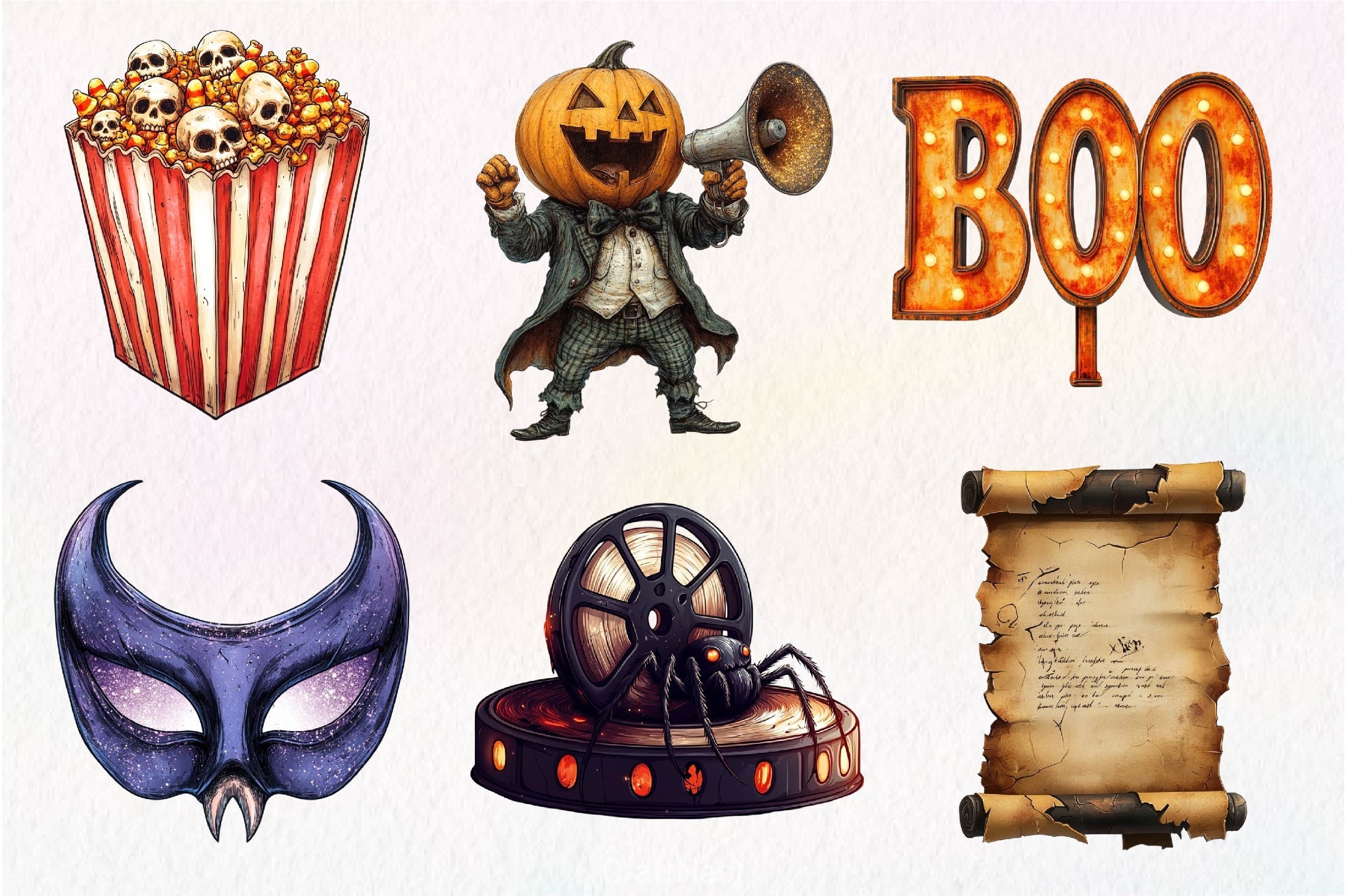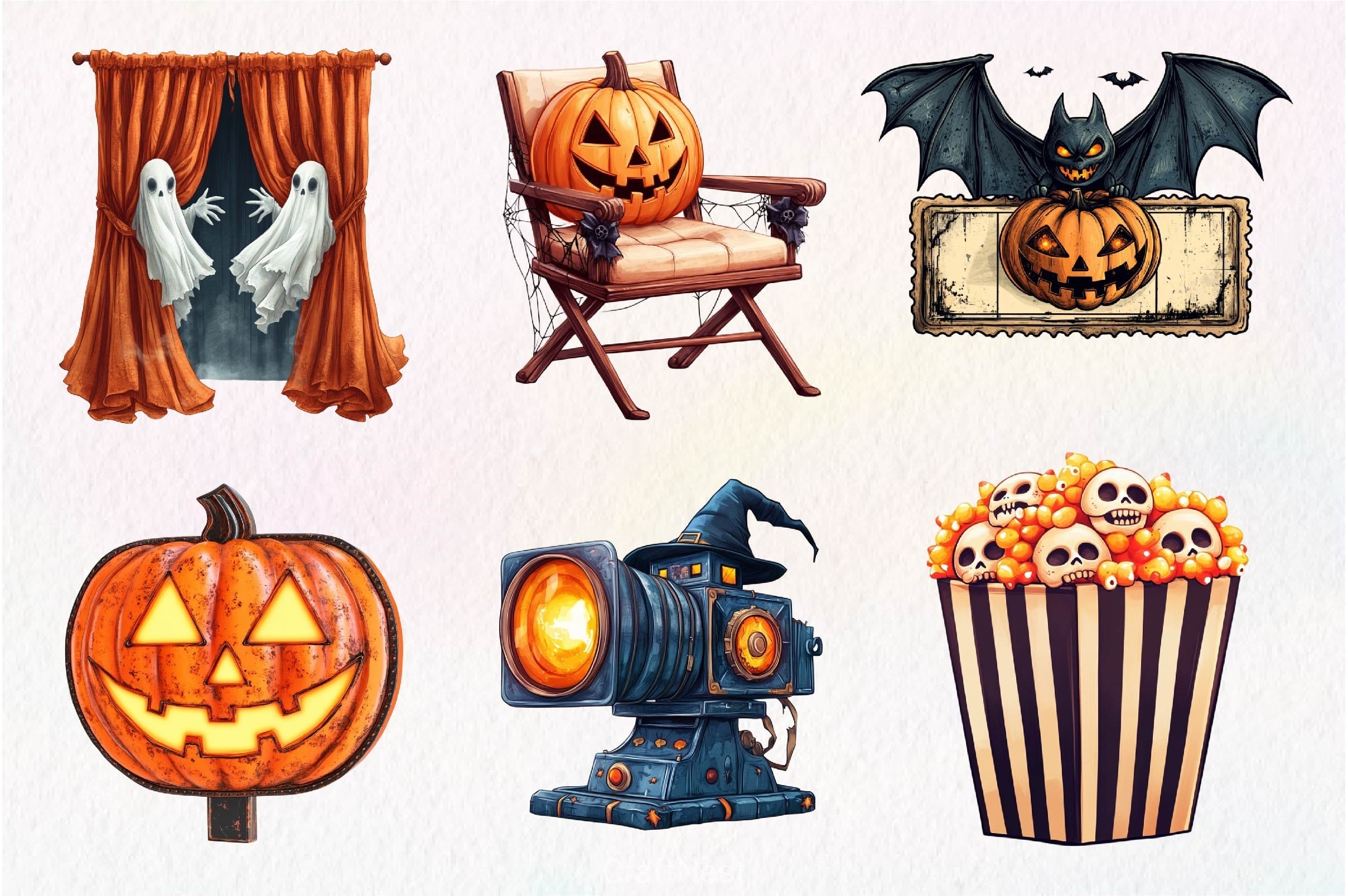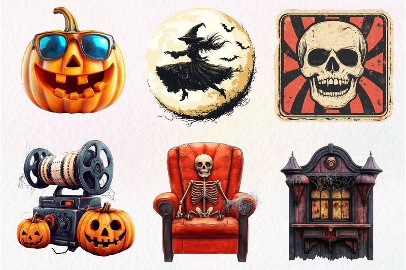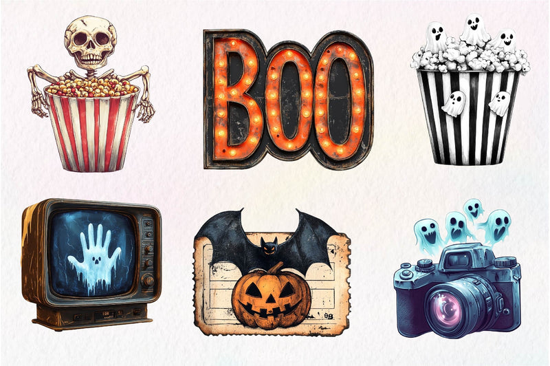 Screen with this Vintage Halloween Cinema Clipart Bundle, featuring retro movie spooky designs, perfect for nostalgic Halloween crafts.