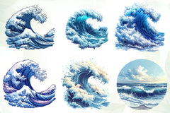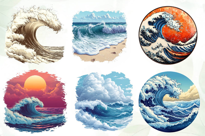 Wave with this Vintage Ocean Waves Clipart Bundle, featuring vintage ocean waves, ideal for retro marine crafts.