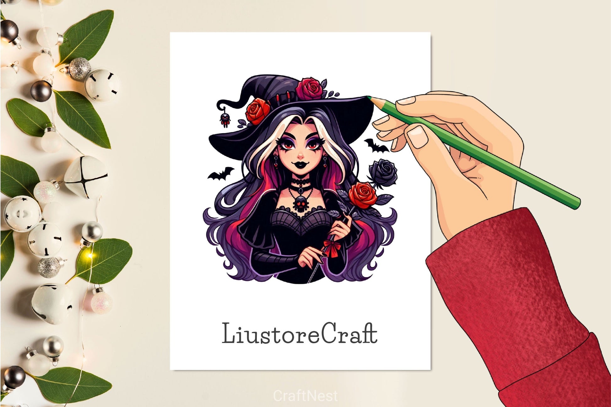 Vintage Pin Up Halloween Girl Clipart Bundle ,11
