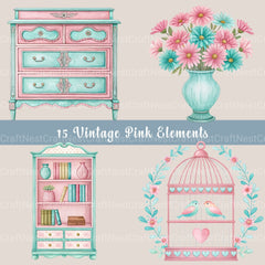 Blush with this Vintage Pink 15 Clipart Bundle, featuring pink vintage designs, perfect for vintage color crafts.