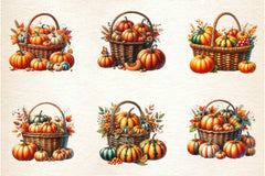 Vintage Pumpkin Basket Clipart Bundle
