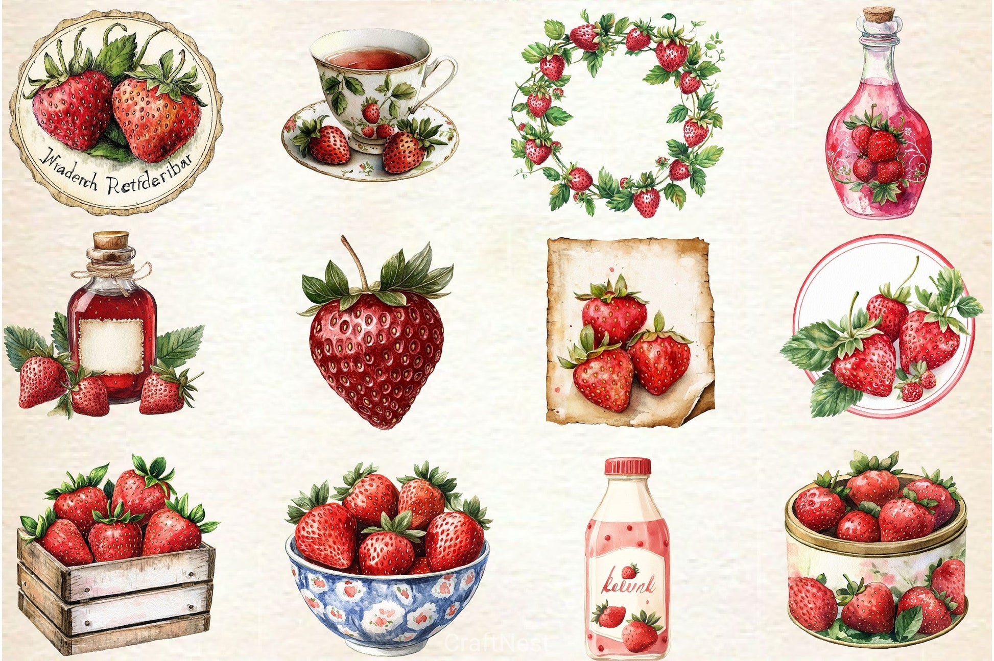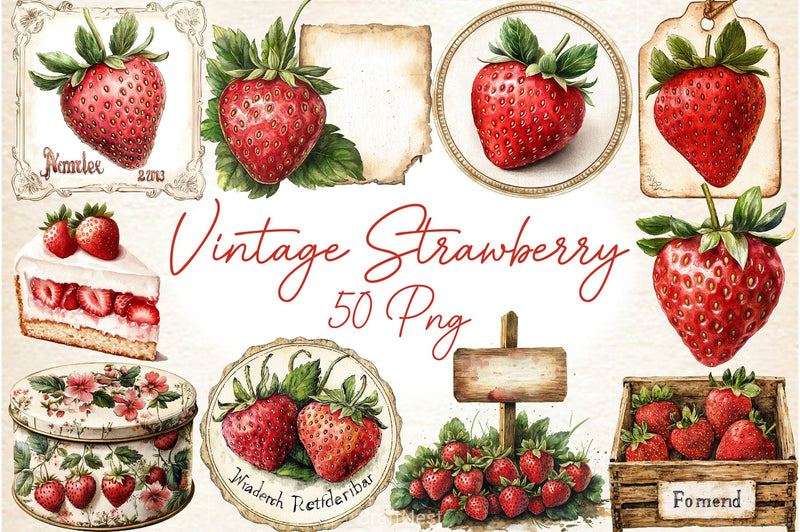 Berry with this Vintage Strawberry Clipart Bundle, featuring retro strawberry designs, perfect for nostalgic fruit crafts.