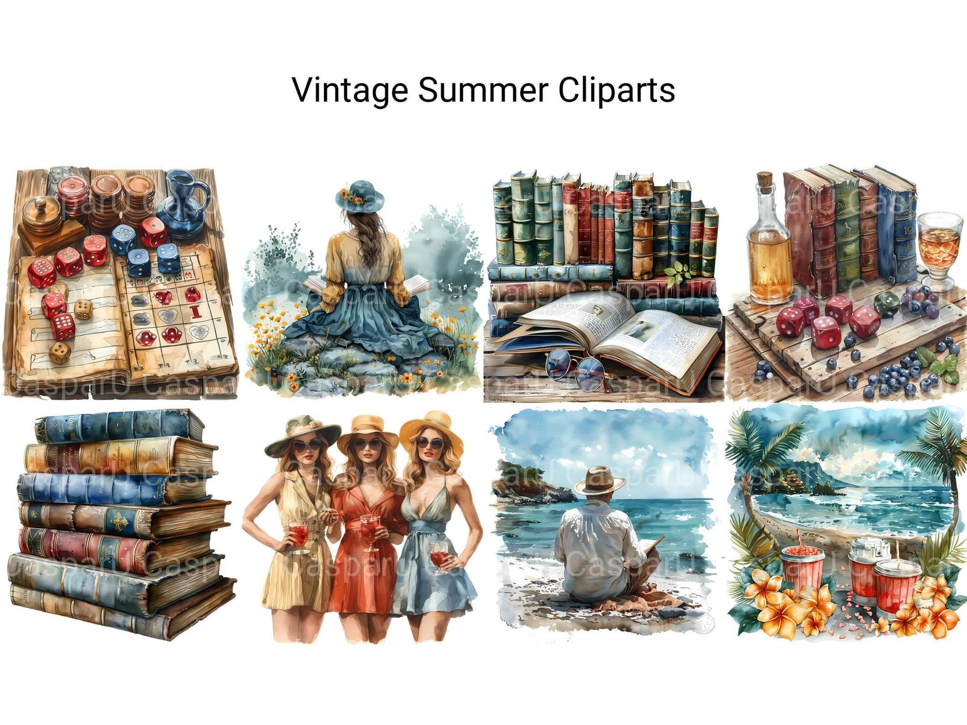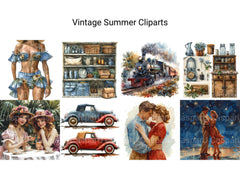 Step back in time with our Vintage Summer clipart, showcasing nostalgic designs inspired by summers of the past. These illustrations bring a timeless charm and retro vibe to summer themes, perfect for creating projects with a vintage flair.