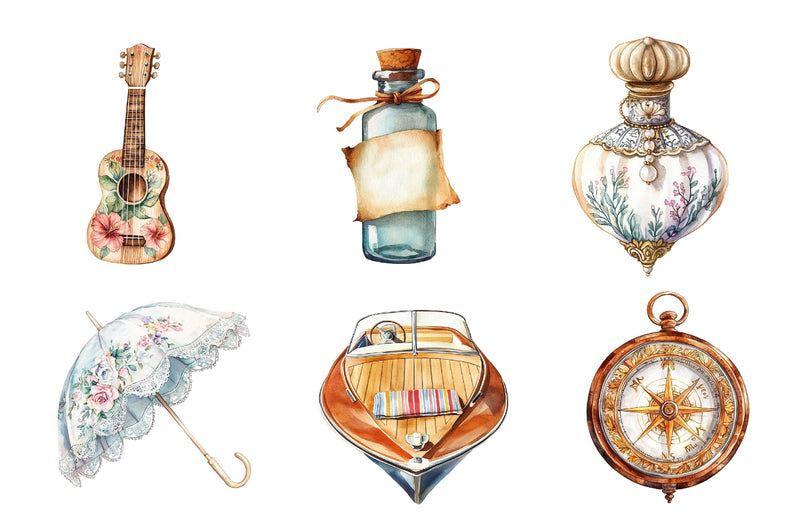 Vintage Summer Tropical Clipart Bundle