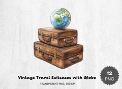 Discover the charm of our Vintage Travel Suitcases with Globe Clipart Bundle, perfect for adding a touch of nostalgia to your creative projects. This unique collection features beautifully crafted suitcase designs paired with classic globe illustrations, ideal for travel-themed crafts, scrapbooking, and digital design. Elevate your artistic endeavors with these timeless graphics, perfect for evoking wanderlust and adventure. Whether you're designing invitations, creating wall art, or enhancing your blog, this bundle offers endless possibilities. Unleash your creativity and explore the world with our Vintage Travel Suitcases and Globe Clipart Bundle today!