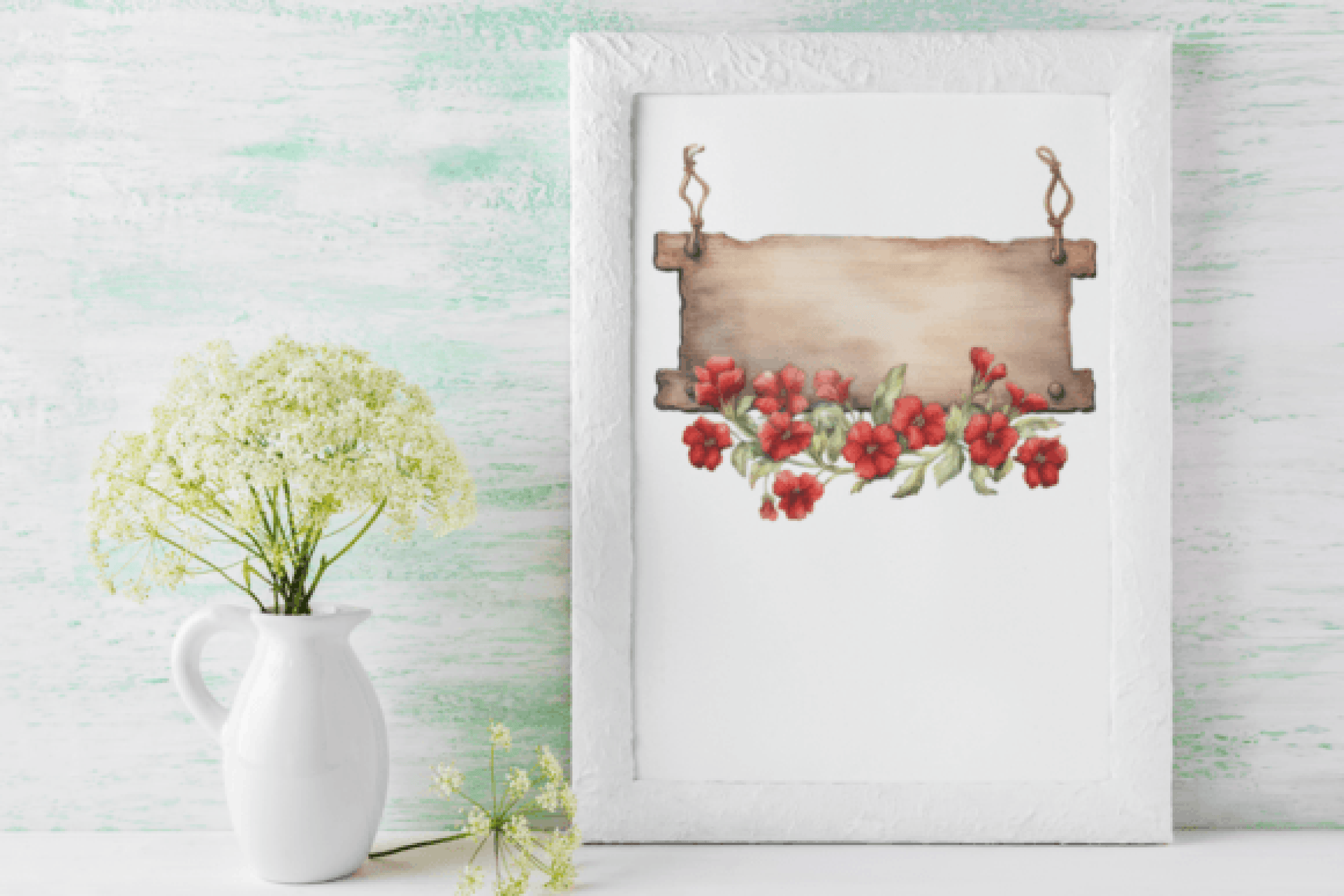Vintage Valentine's Floral Wooden Sign Clipart Bundle