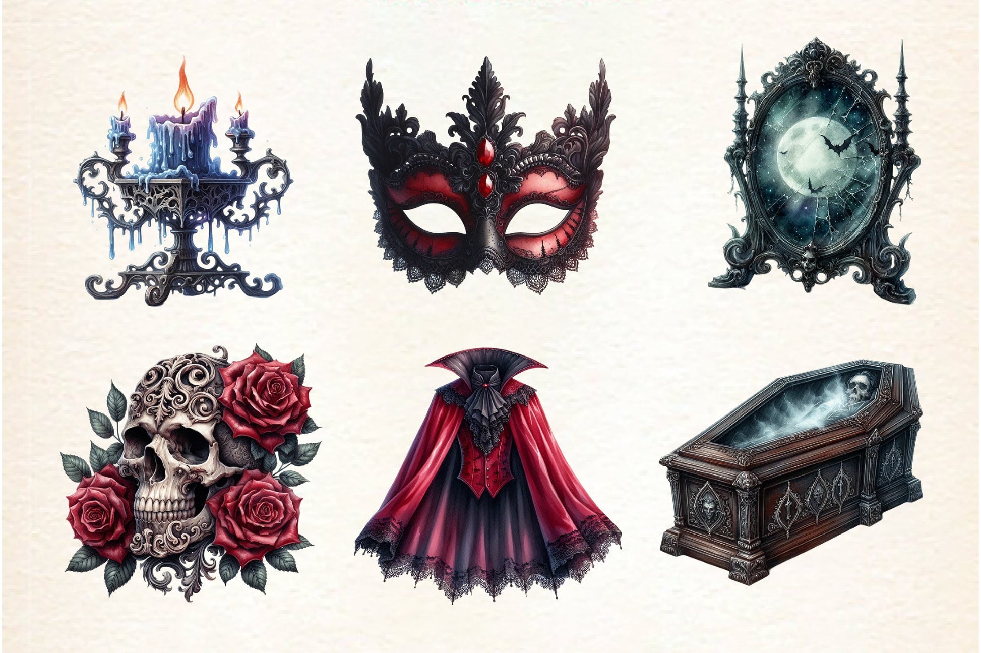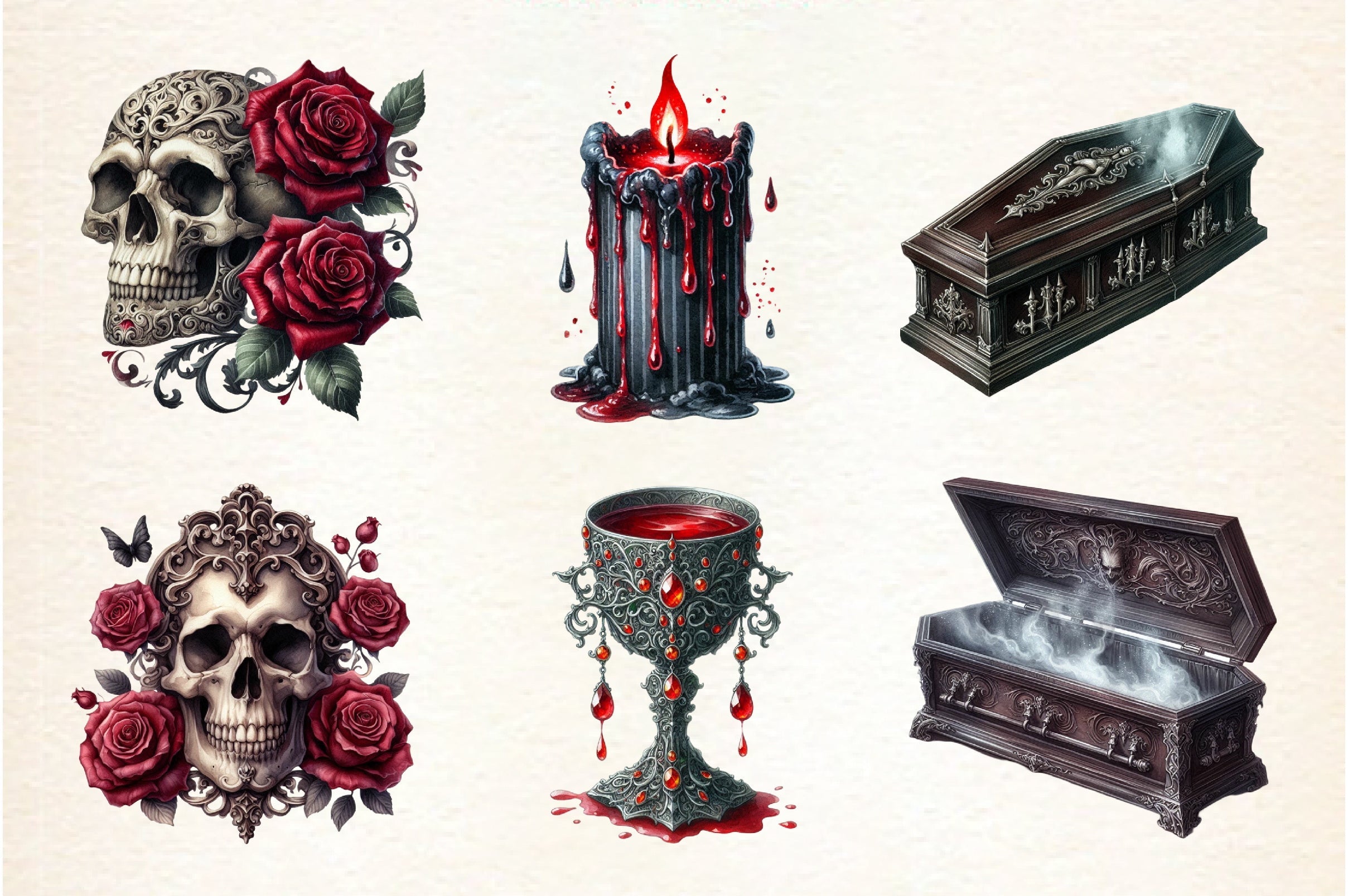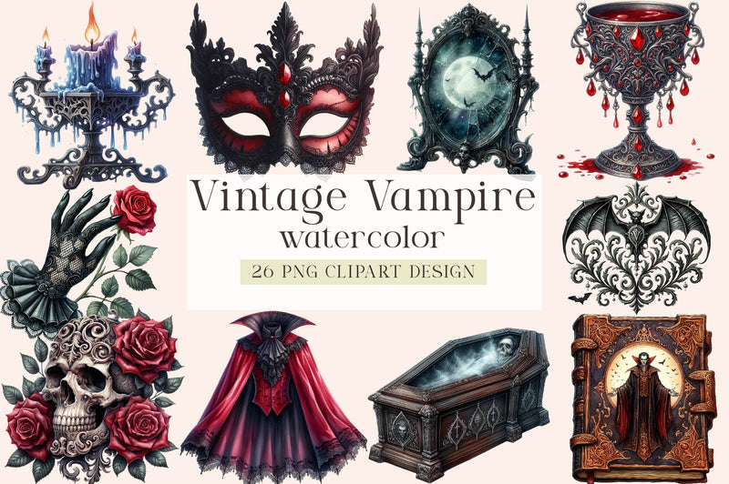 Unleash your creativity with the Vintage Vampire Designs Clipart Bundle, featuring hauntingly beautiful vampire-themed illustrations perfect for gothic art projects and eerie decor.