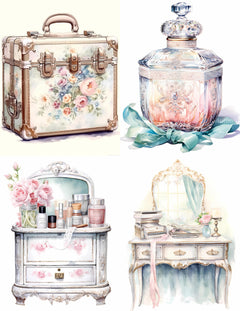 Embrace the glamour and sophistication of vintage beauty with our Vintage Vanity digital junk journal. Brimming with illustrations of ornate mirrors, luxurious cosmetics, and elegant dressing tables, each page invites you to pamper yourself in the opulent atmosphere of a bygone era, offering a delightful journey through a world where every reflection is a vision of timeless allure and every cosmetic is a treasure from the past.