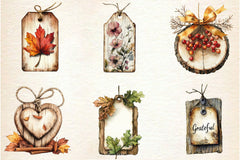 Vintage Wooden Autumn Tags Clipart Bundle 2