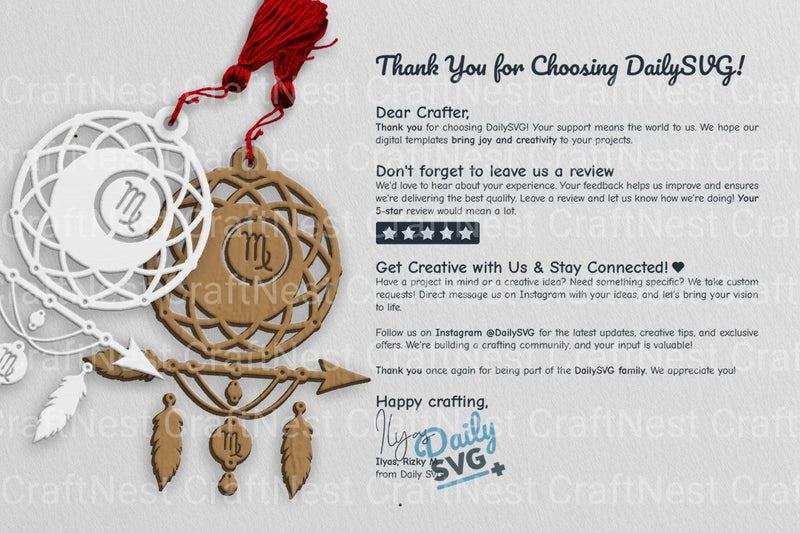 Capture celestial charm with the Virgo Dream Catcher Set SVG Bundle, featuring intricate designs perfect for personalized crafts and home decor projects.