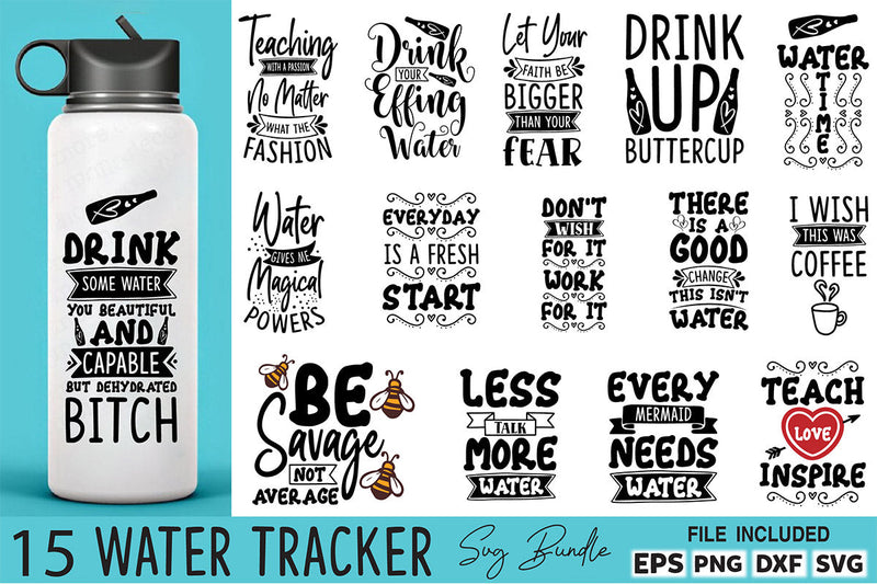 Hydrate with this Water Tracker 15 SVG Bundle, featuring tracking designs, ideal for health crafts.