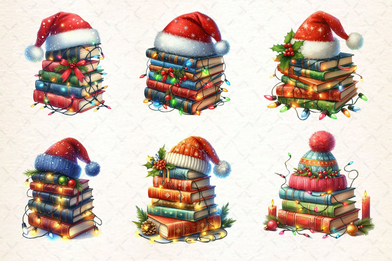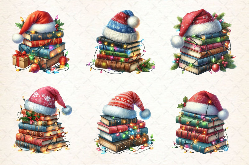 Stack with this Watercolor Christmas Book Stack Clipart Bundle, featuring artistic holiday reading designs, perfect for literary Christmas crafts.