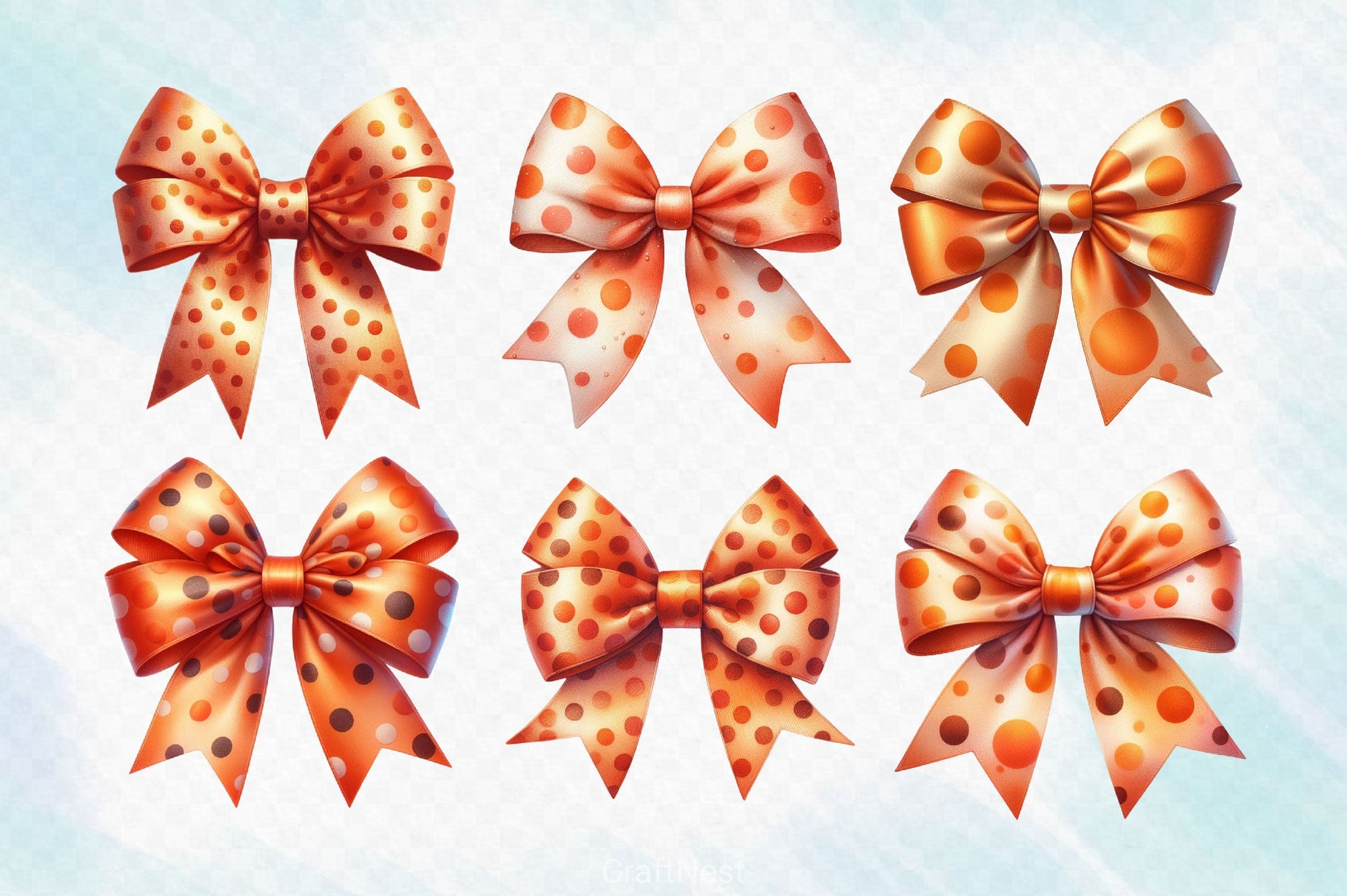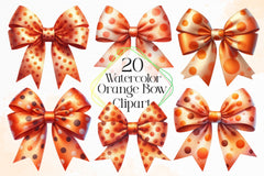 Artistic watercolor orange bow designs perfect for autumn and gift themed crafting.
