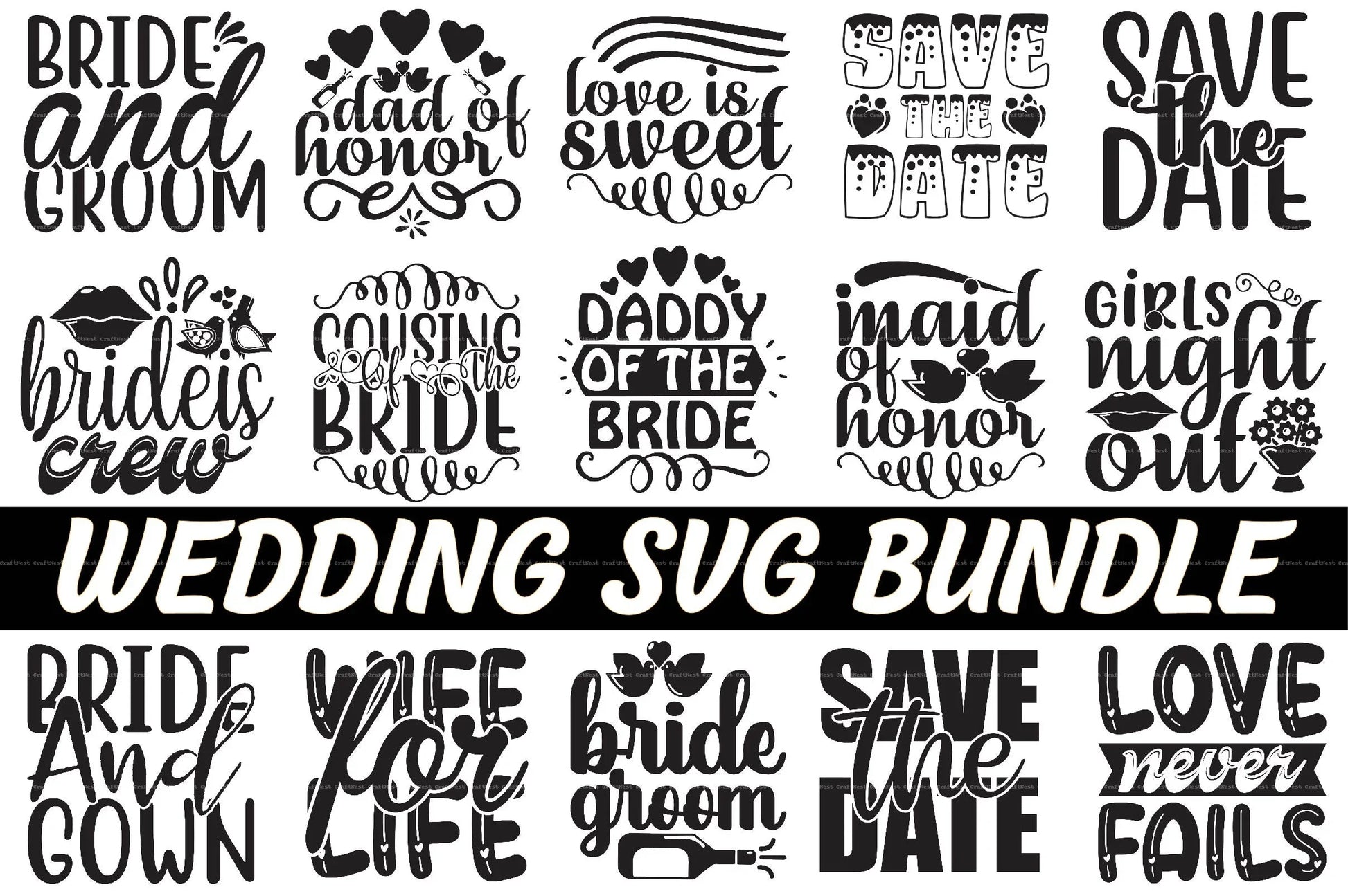 Enhance your special day with our Wedding SVG Bundle Collection, featuring exquisite designs perfect for creating personalized wedding invitations, decor, and keepsakes. Ideal for DIY enthusiasts and crafters looking to add a unique touch to their wedding projects.