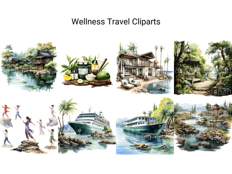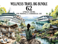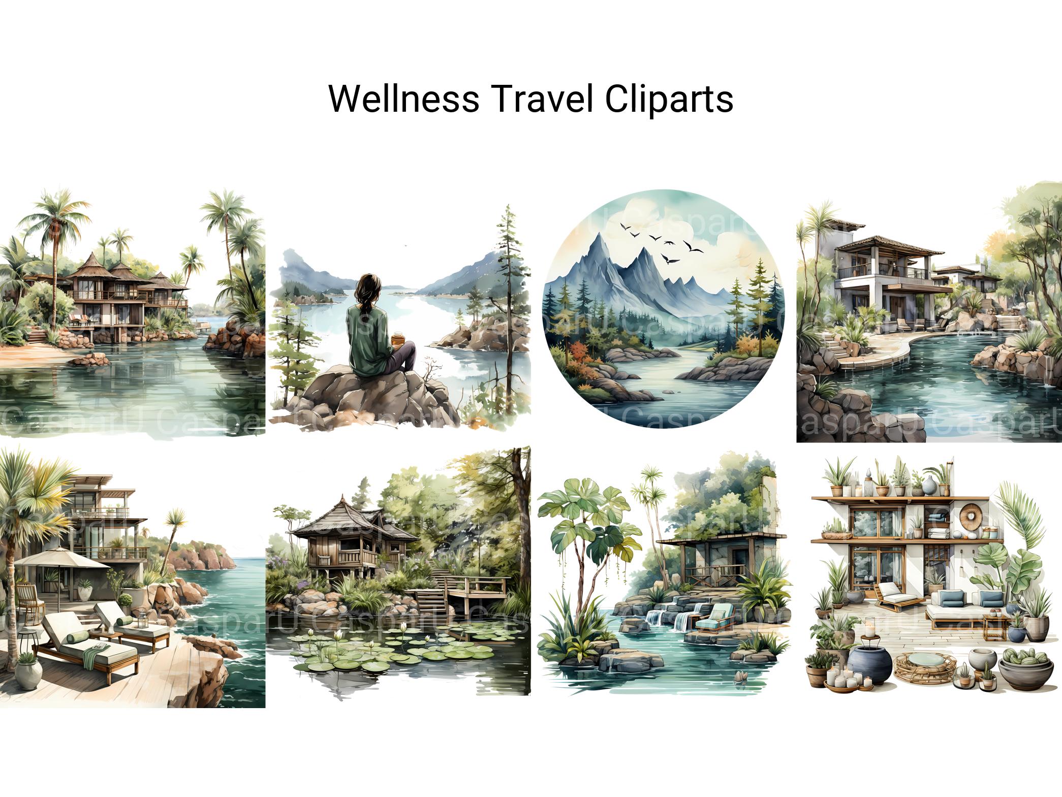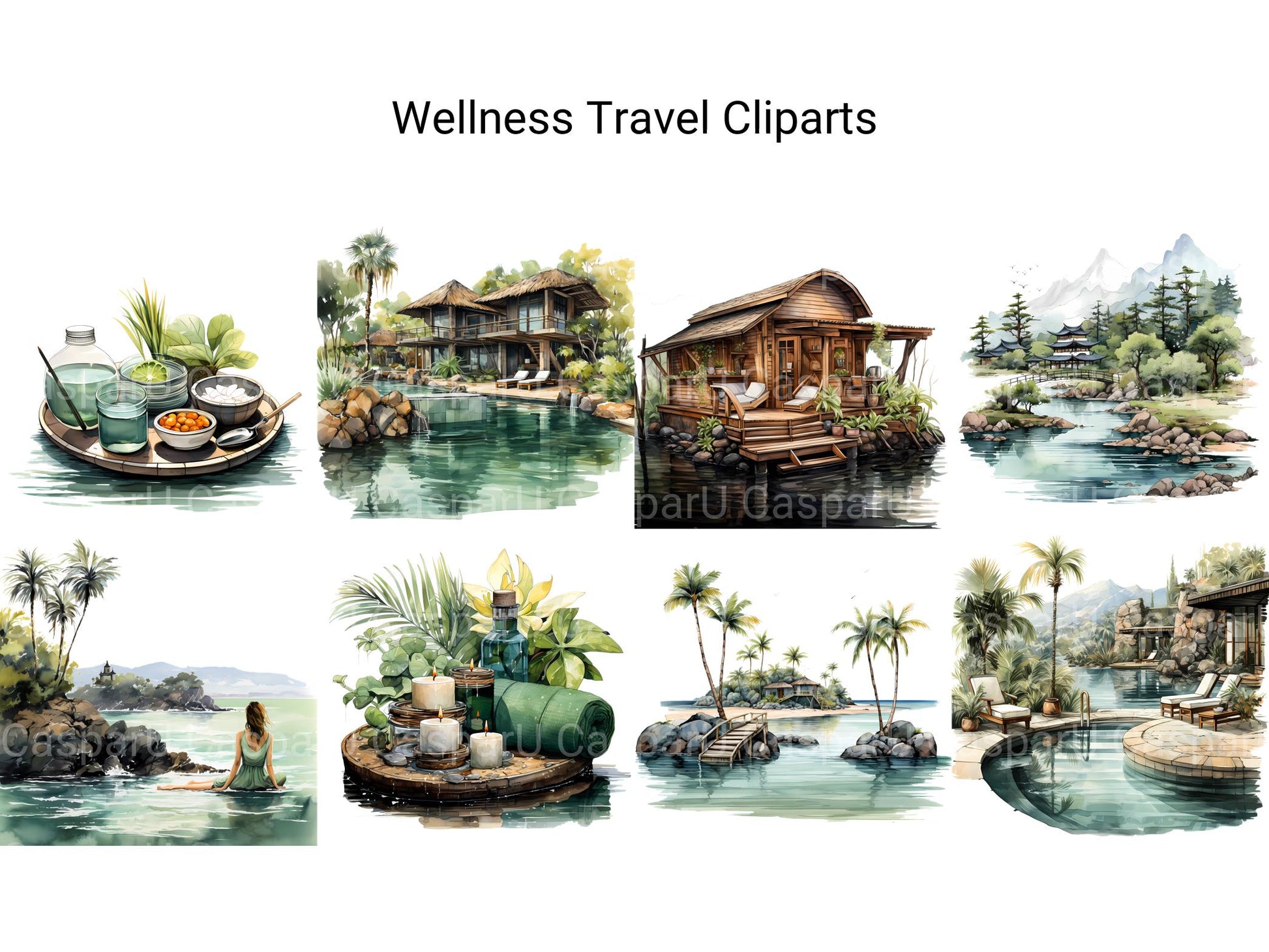 Embrace the journey to wellness with digital clip art showcasing serene landscapes, yoga poses, spa scenes, and healthy lifestyle elements. These illustrations evoke the tranquility and rejuvenation of wellness travel, perfect for adding a sense of relaxation and balance to your projects, whether for wellness blogs, travel brochures, or holistic-themed designs, inviting viewers to embark on a journey of self-care and mindfulness in beautiful destinations around the world.