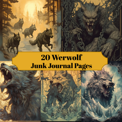 Surrender to the primal allure of the full moon with our Werewolves digital junk journal. Each page is adorned with haunting illustrations of lupine transformation and moonlit forests, capturing the raw power and untamed beauty of werewolves, perfect for those who feel the call of the wild and the mystique of the shape-shifter beneath the silvery moonlight.