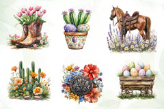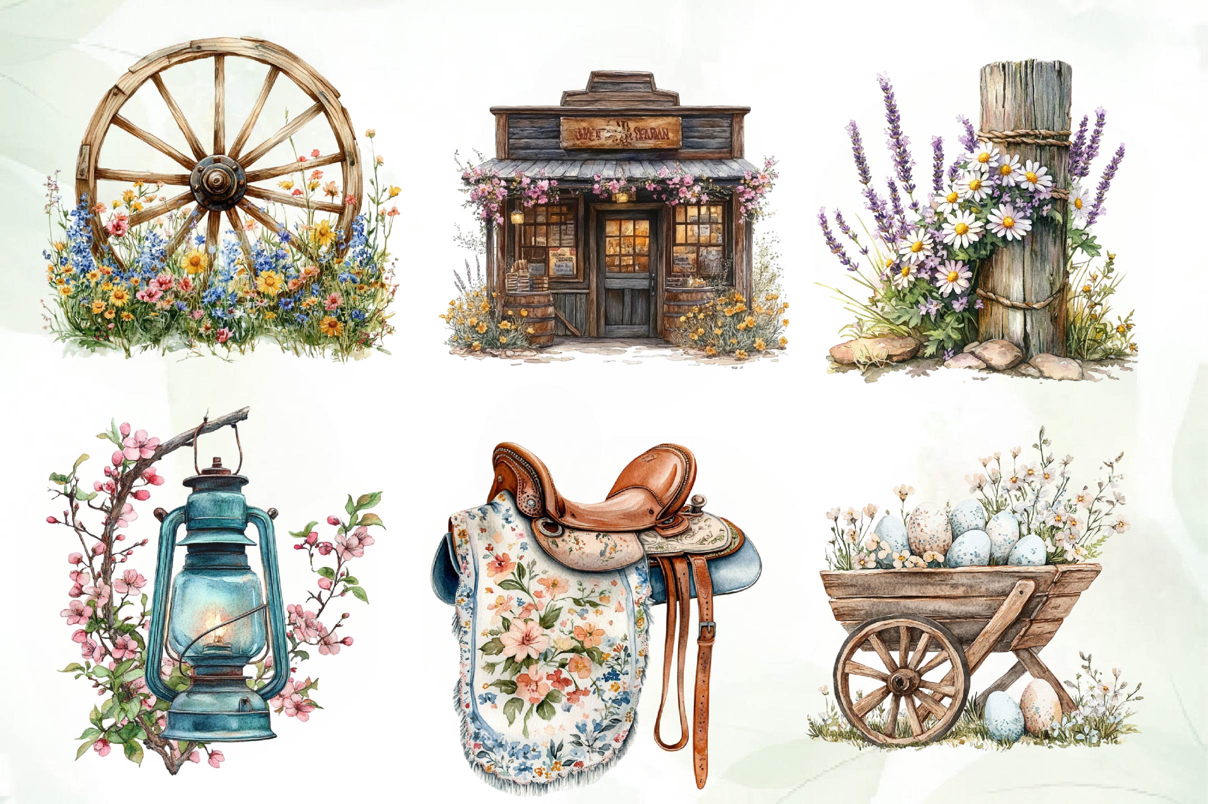Ride with this Western Spring Clipart Bundle, featuring cowboy spring designs, ideal for ranch seasonal crafts.
