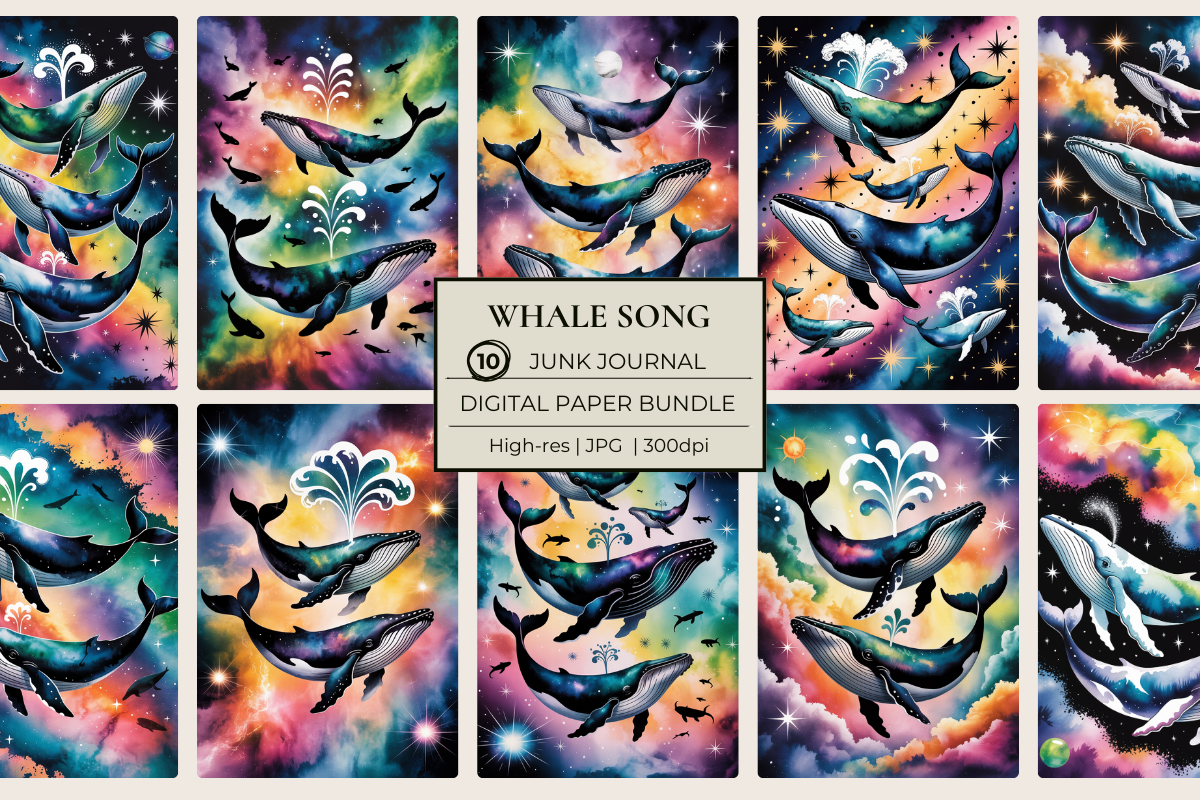 Immerse yourself in creativity with Whale Song Junk Journal Papers, featuring stunning ocean-inspired designs perfect for scrapbooking, journaling, and artistic projects. Ideal for marine-themed crafts, these high-quality papers bring the serene beauty of the sea to your creative endeavors.
