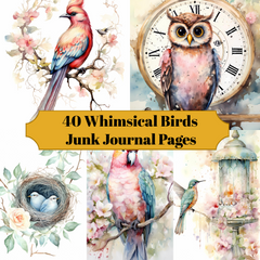 Take flight into a whimsical world of avian enchantment with our Whimsical Birds digital junk journal. Each page is adorned with illustrations of colorful birds, enchanting nests, and magical forest scenes, inviting you to escape into a realm where every chirp is a melody and every feather is a stroke of artistic whimsy, offering a delightful journey through a world where nature's beauty and imagination intertwine in perfect harmony.