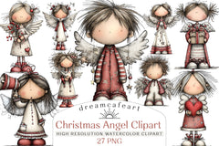 Transform your seasonal creations with this enchanting collection of Christmas angel clipart, ideal for cards, scrapbooking, and more.