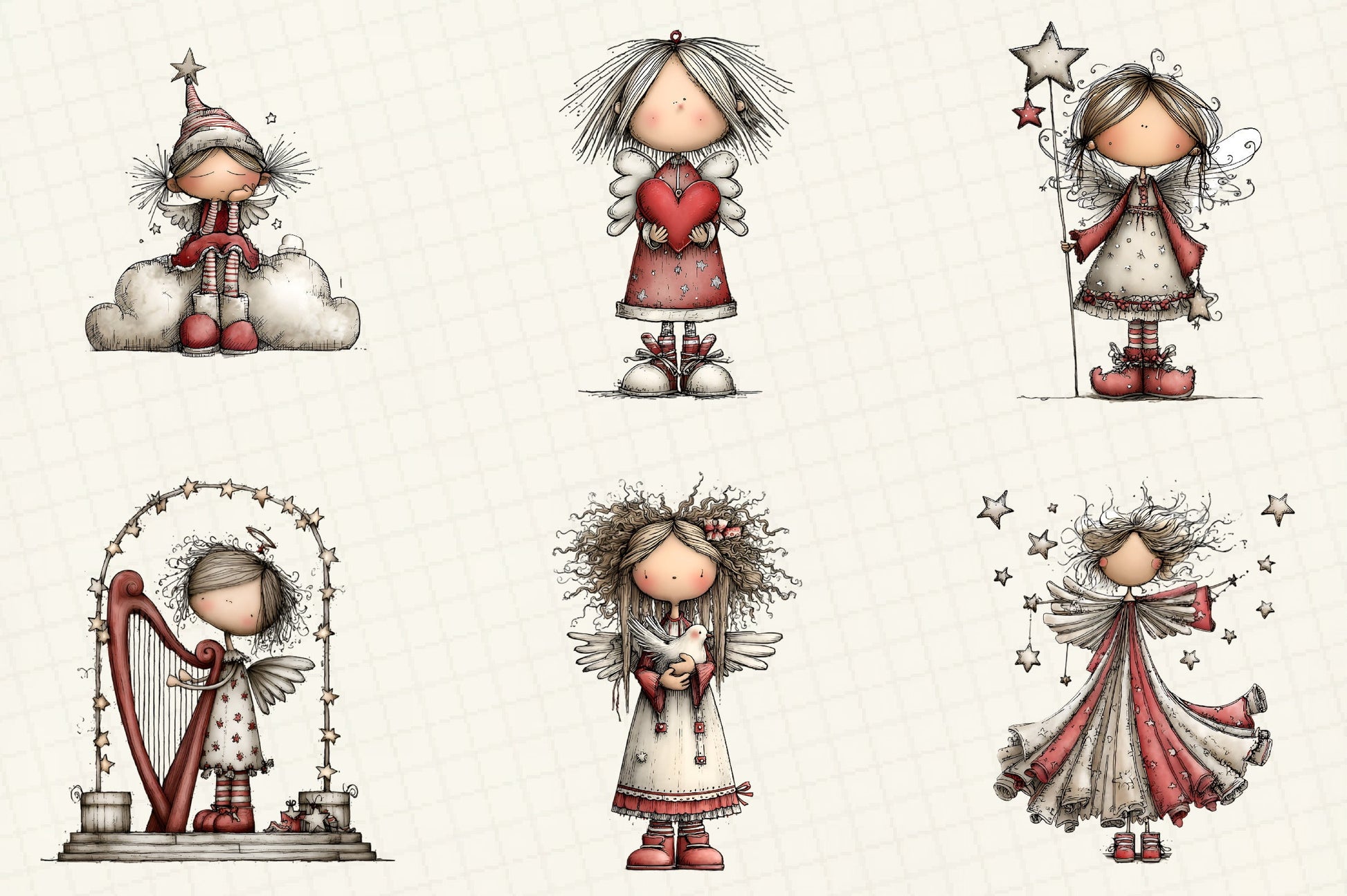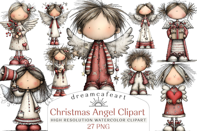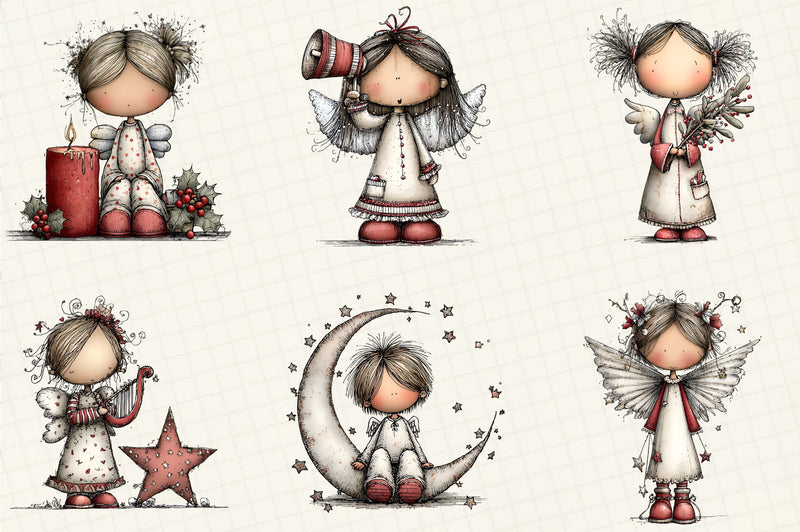 Whimsical Christmas Angel Clipart Design Bundle