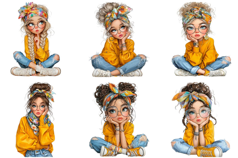 Explore endless possibilities with our Cute Girl Clipart Bundle, featuring whimsical illustrations that bring joy to any creative project.