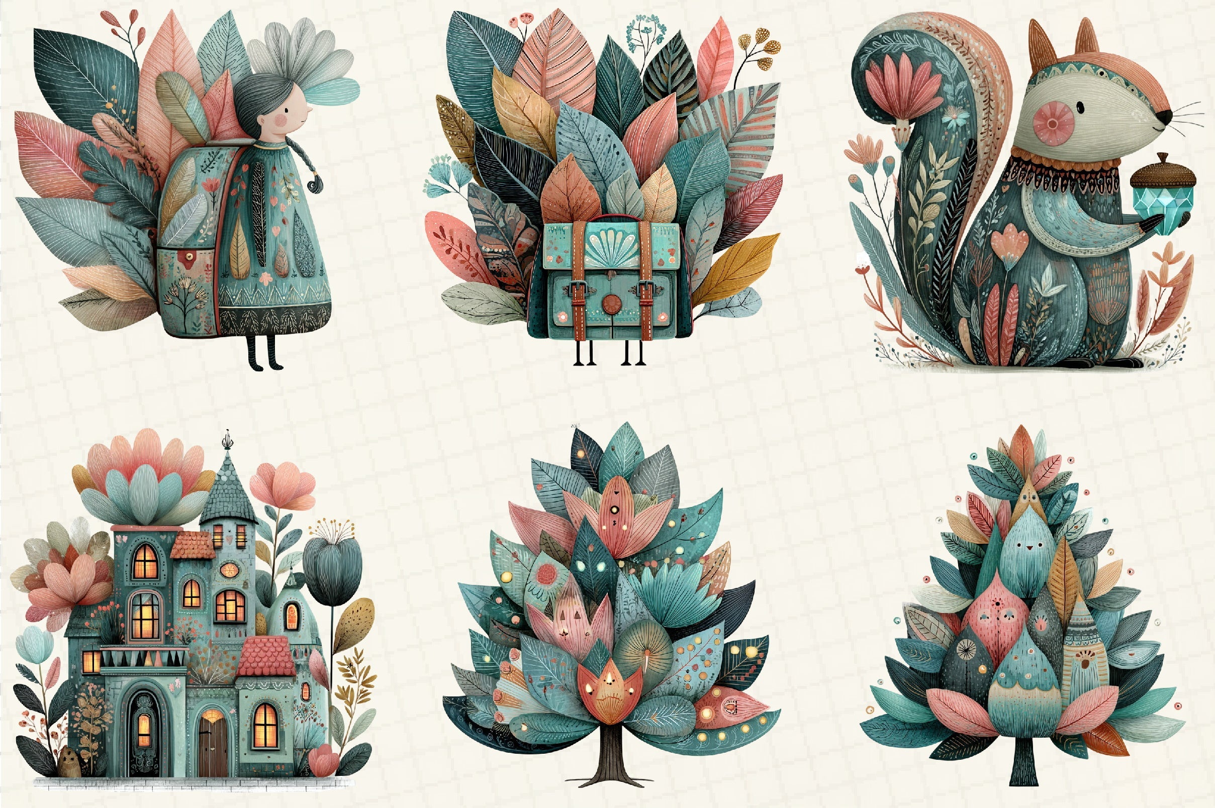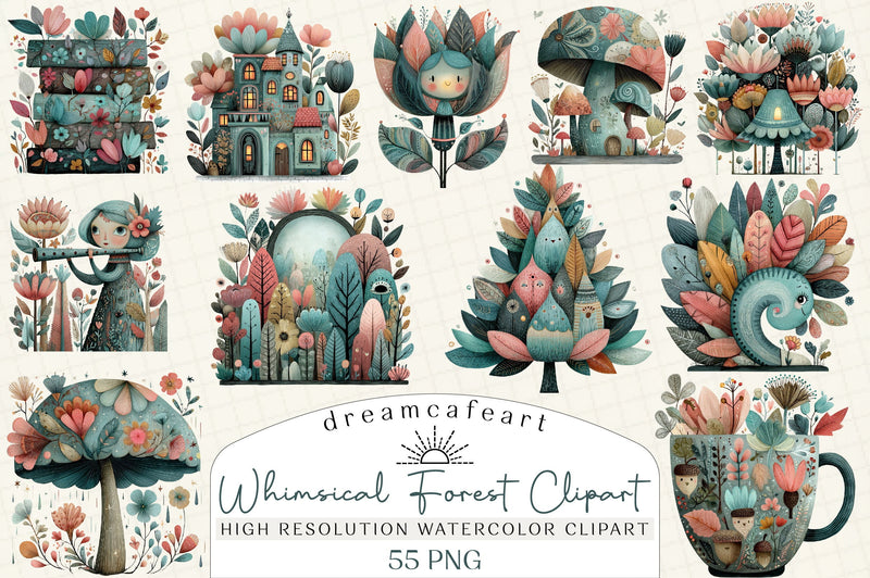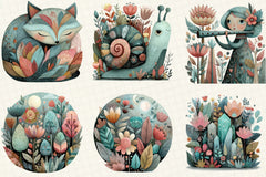 Unleash creativity with the Whimsical Forest Clipart Bundle, featuring enchanting woodland creatures and vibrant nature elements, perfect for magical DIY projects and captivating nursery decor.