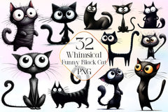Play with this Whimsical Funny Black Cat Clipart Bundle, featuring playful feline designs, perfect for humorous pet crafts.