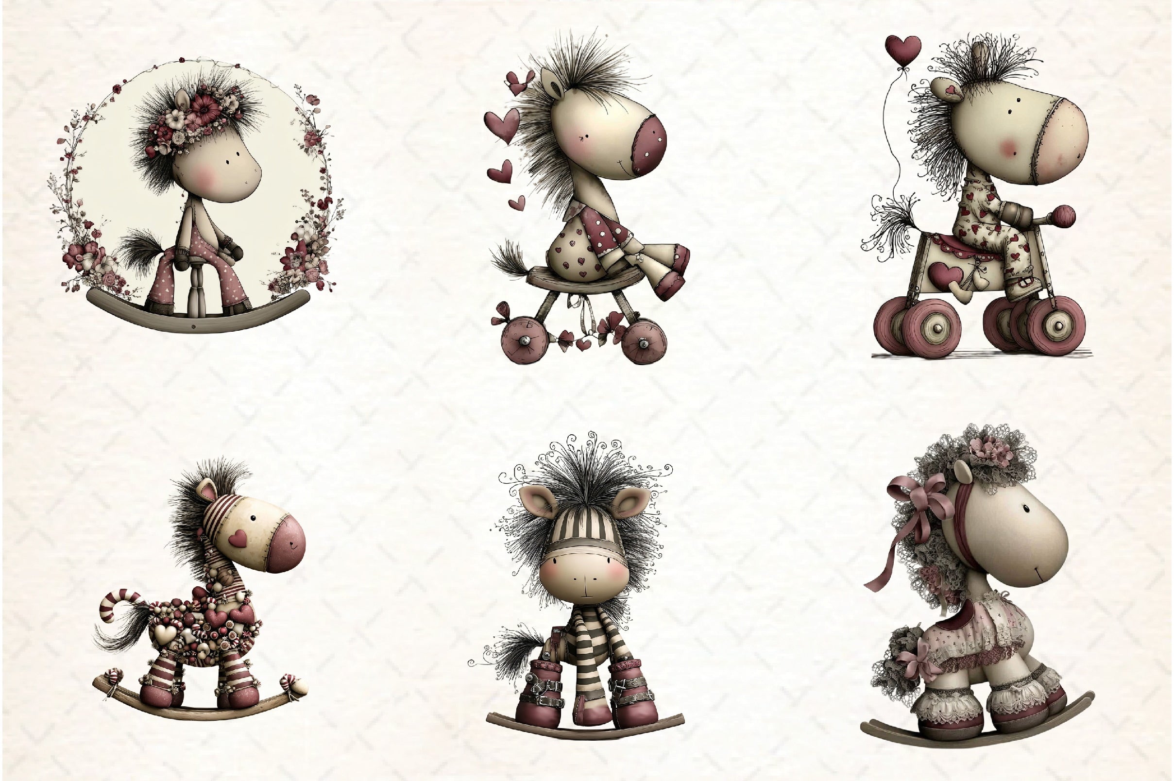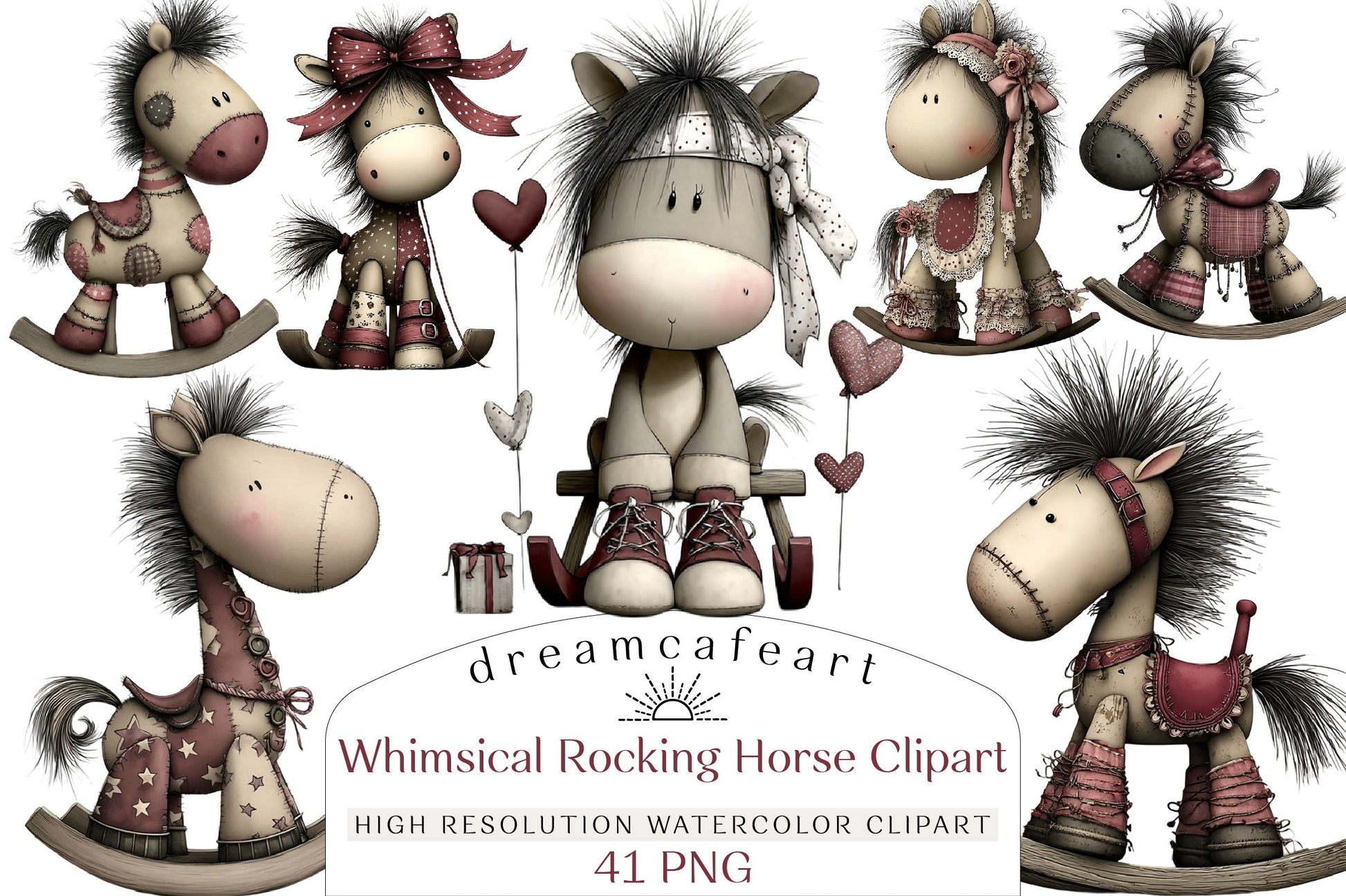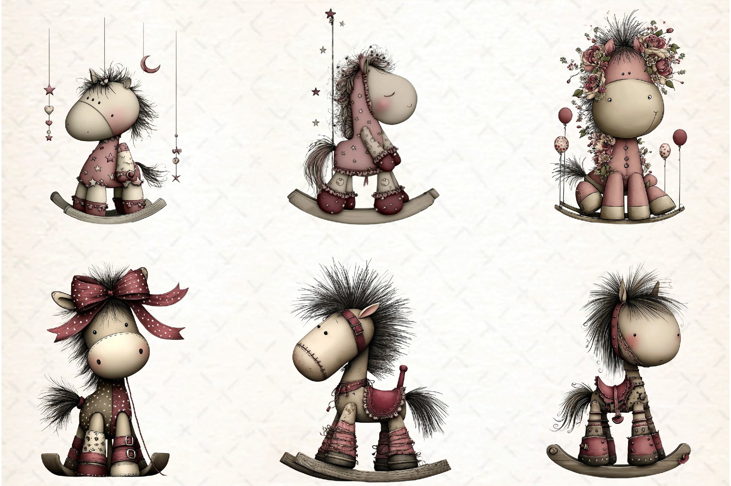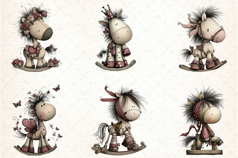 Whimsical Rocking Horse Clipart Bundle