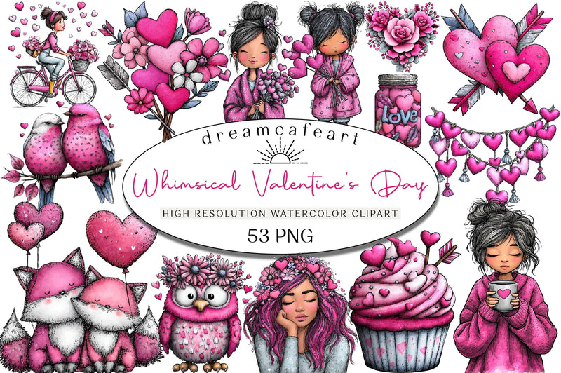 Delight in the Whimsical Valentine's Day Clipart Bundle, a charming collection of romantic designs perfect for heartfelt crafts and digital projects. Capture the essence of love with these enchanting illustrations, ideal for creating personalized cards, invitations, and more. Elevate your creative endeavors with this versatile bundle, designed to inspire and captivate. Perfect for DIY enthusiasts and professional designers alike, this collection offers endless possibilities for expressing affection and creativity. Transform your Valentine's Day projects with these unique and delightful clipart elements, crafted to add a touch of whimsy and romance.