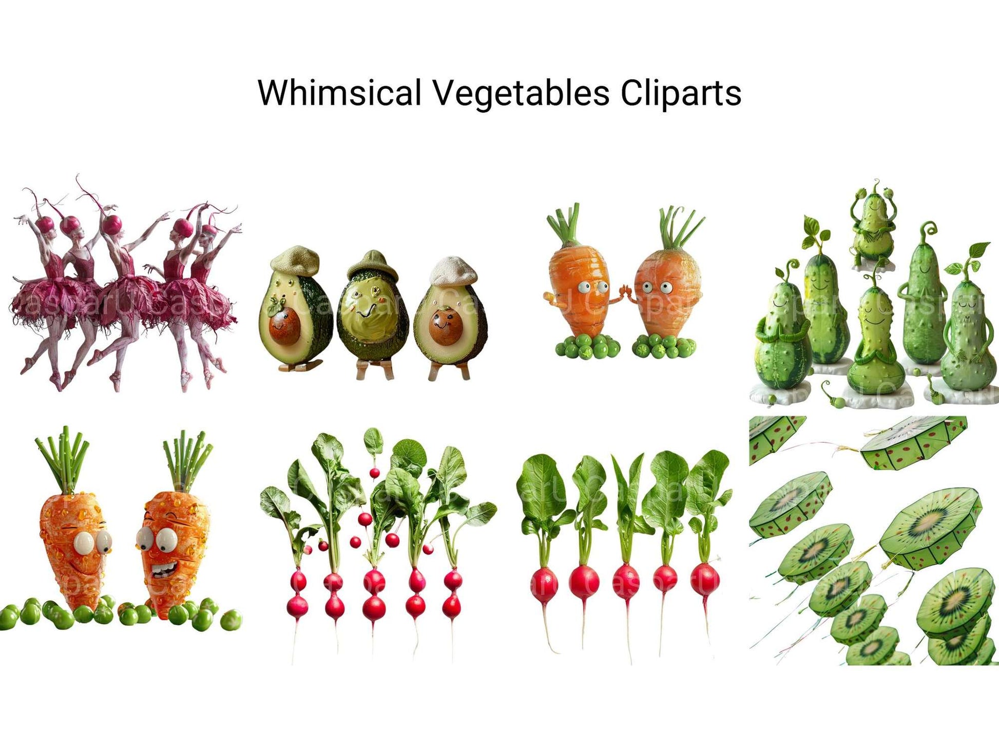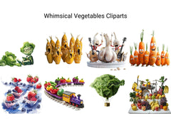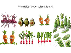 Play with your veggies using this Whimsical Vegetables Clipart set, featuring fun designs, ideal for quirky food projects.