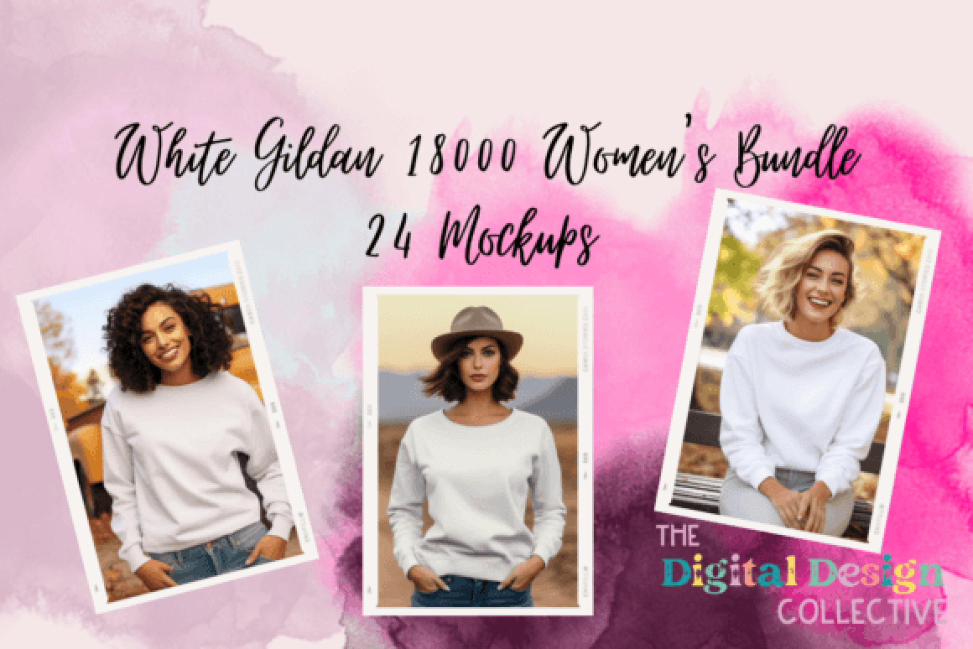 White Gildan 18000 Women's Mockup Bundle