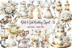 Elevate your wedding projects with our White & Gold Wedding Clipart Bundle, featuring elegant designs perfect for invitations, decor, and more. This exquisite collection offers a touch of luxury and sophistication, ideal for creating unforgettable wedding memories. Transform your creative ideas with these stunning clipart elements, designed to add a timeless charm to any project. Perfect for DIY enthusiasts and professional designers alike, this bundle is your go-to resource for all things wedding-related. Discover the magic of white and gold today!