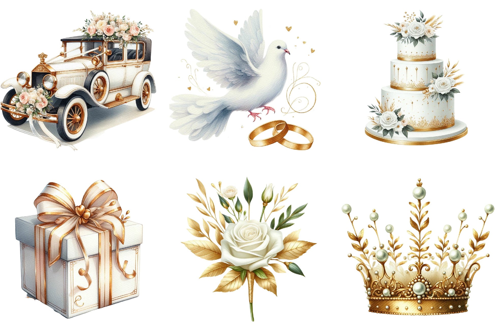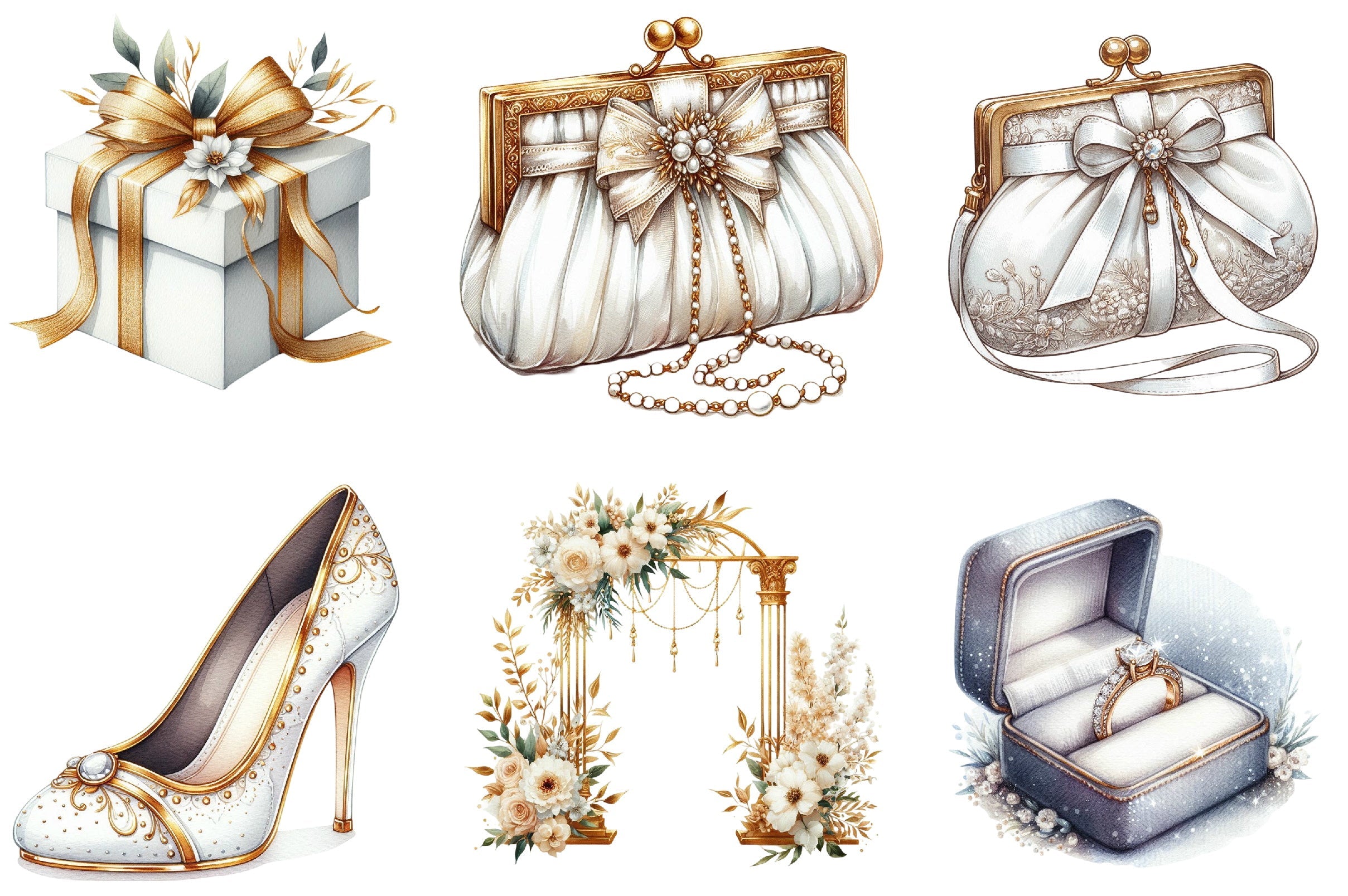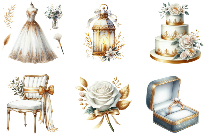 White & Gold Wedding Clipart Bundle