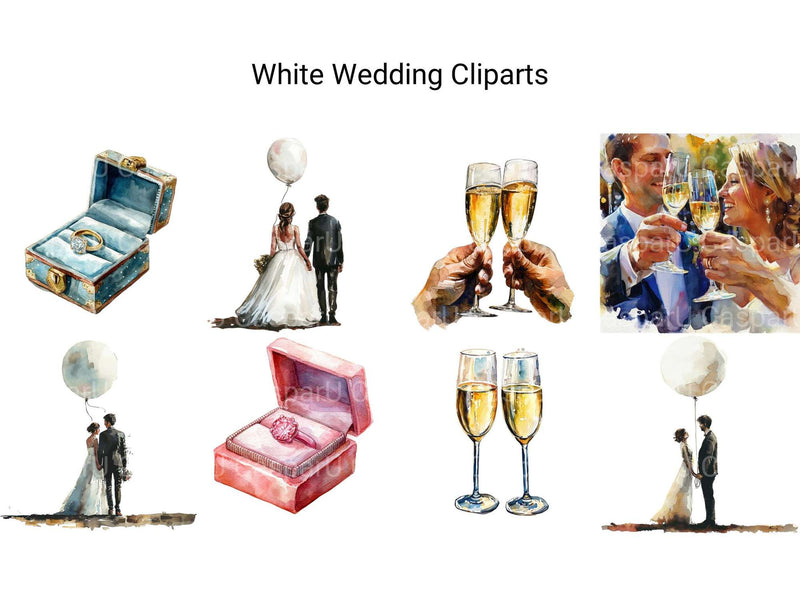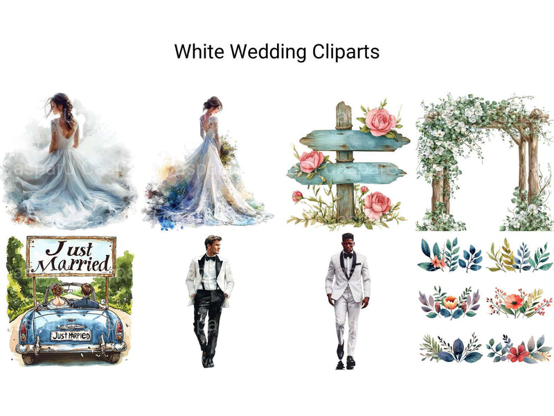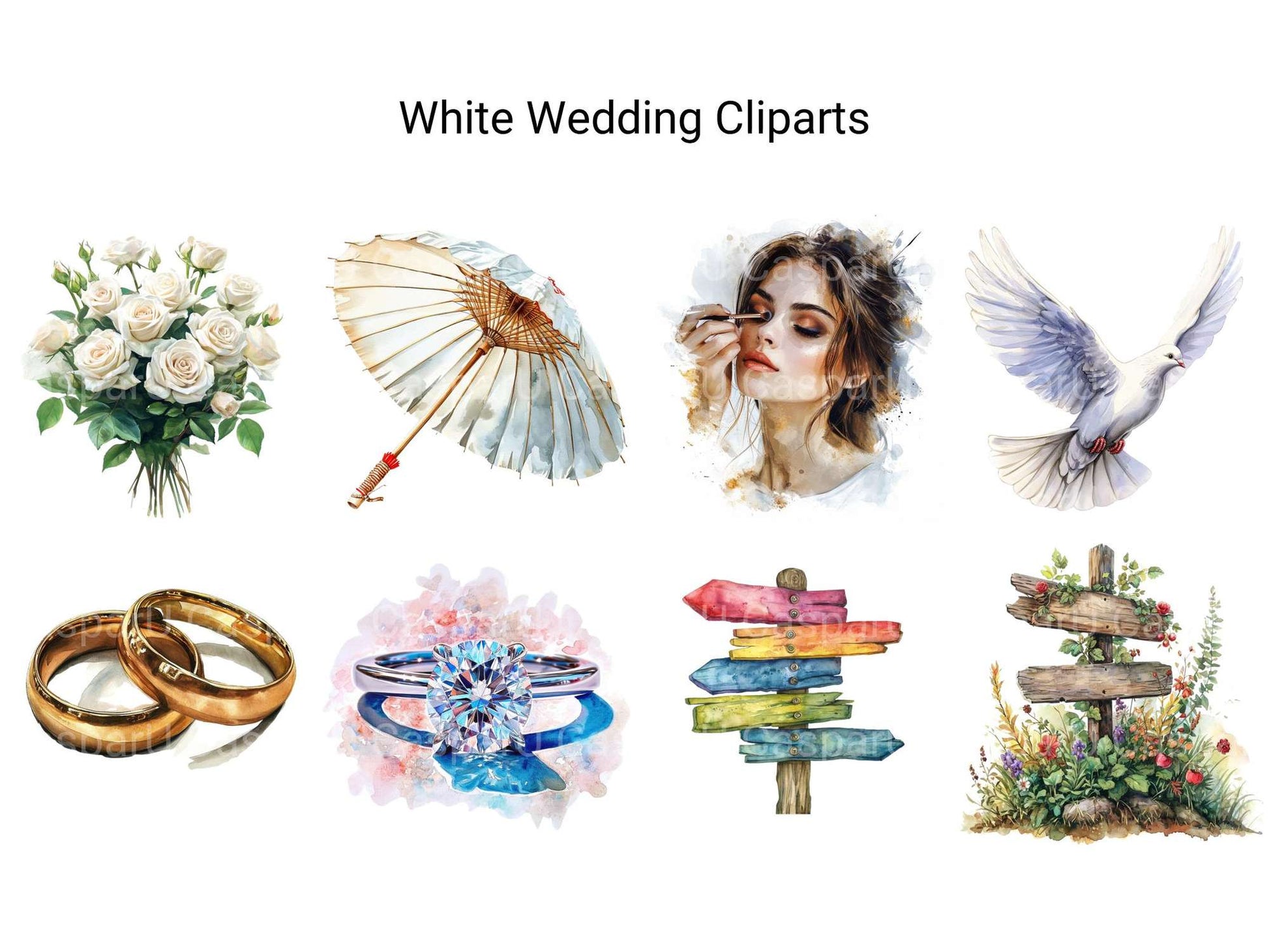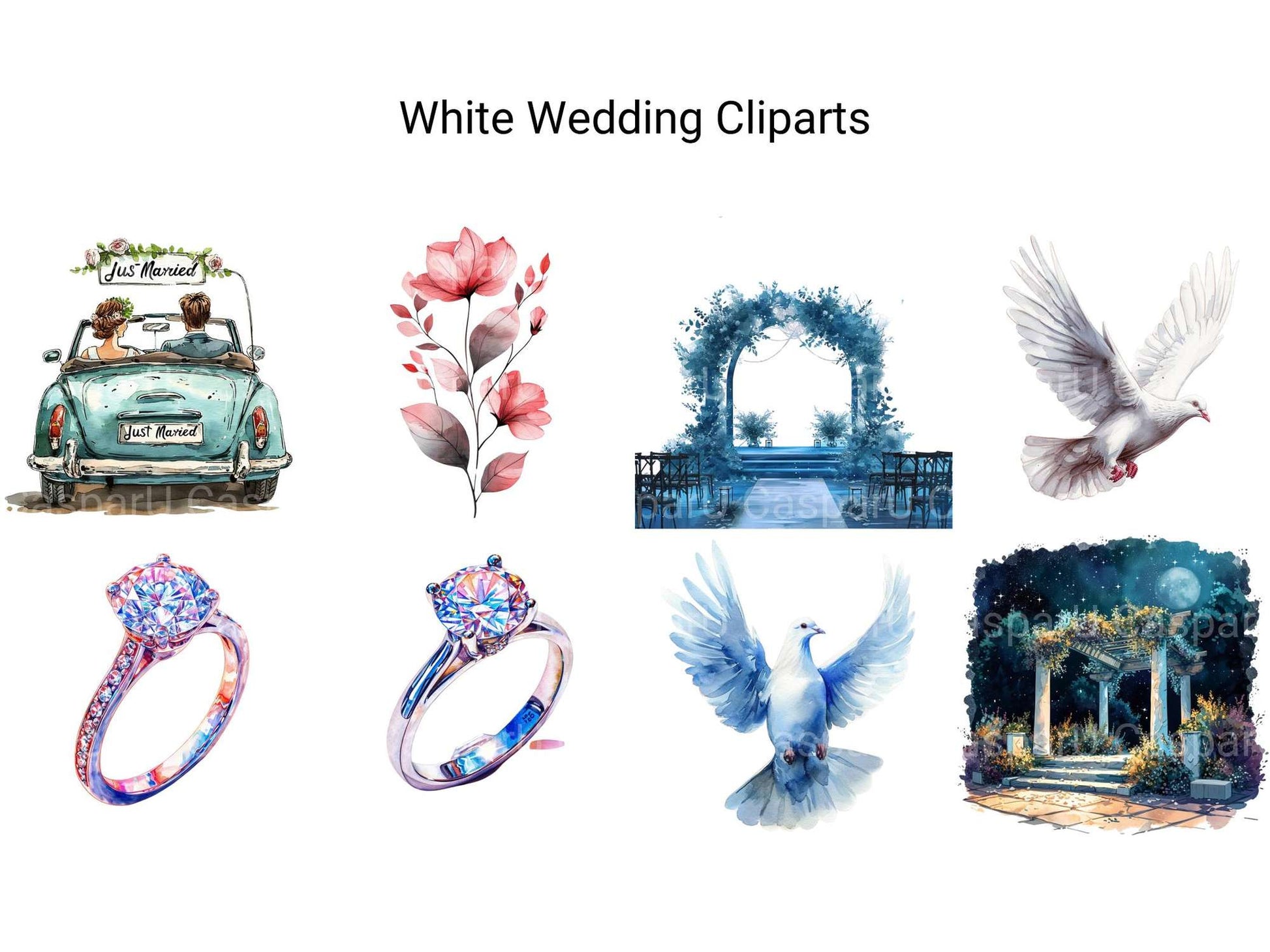 Say ‘I do’ with this White Wedding Clipart set, featuring elegant wedding designs, ideal for romantic projects.