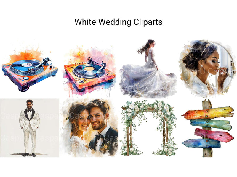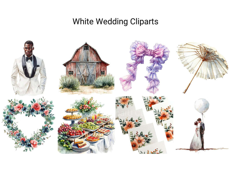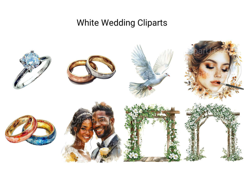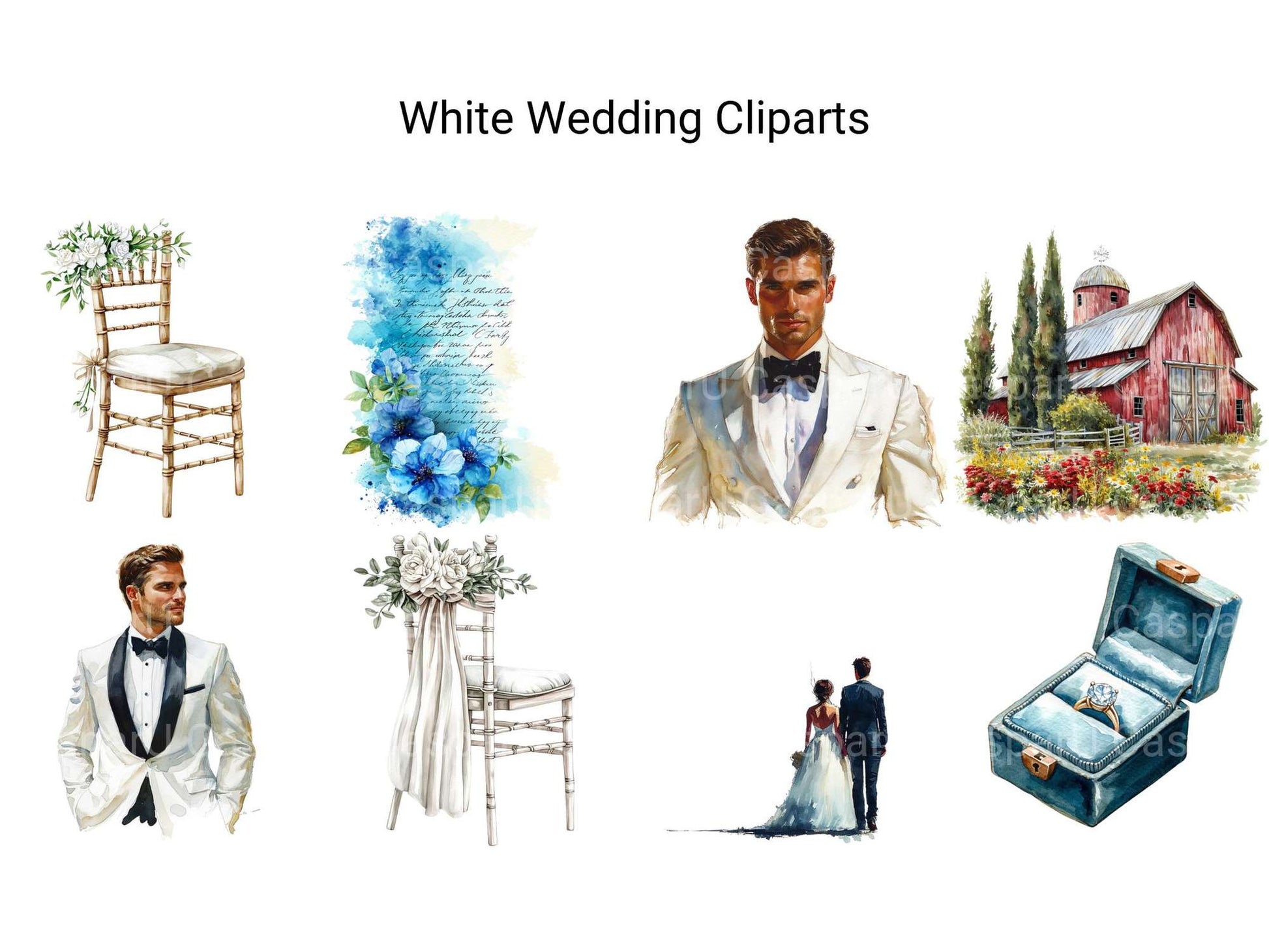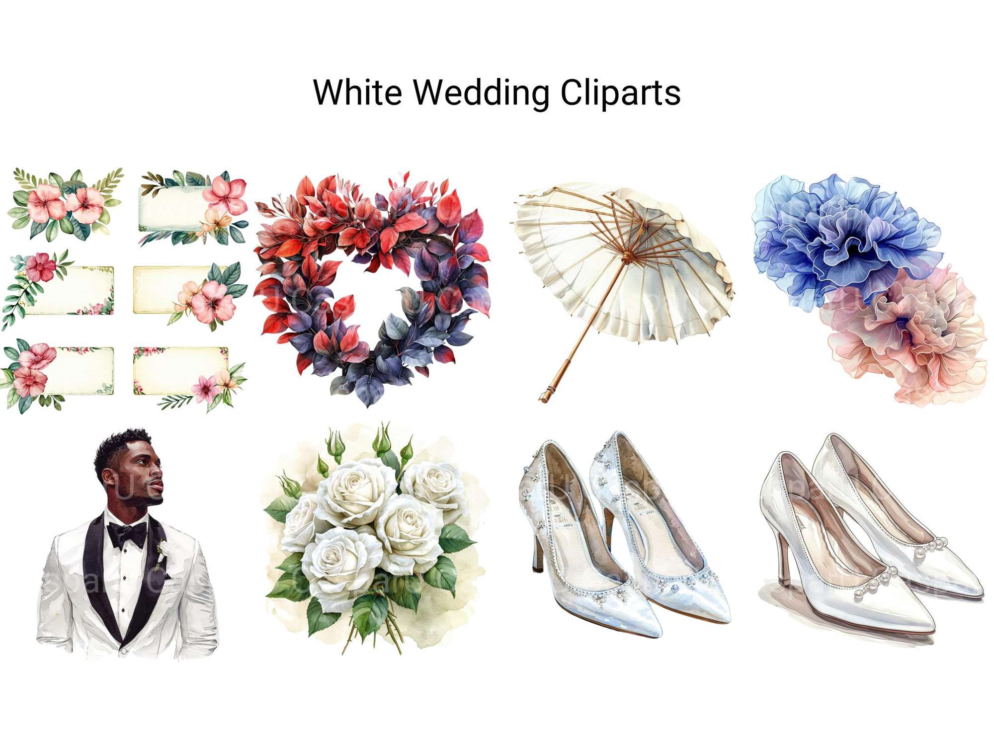 Say ‘I do’ with this White Wedding Clipart set, featuring elegant wedding designs, ideal for romantic projects.