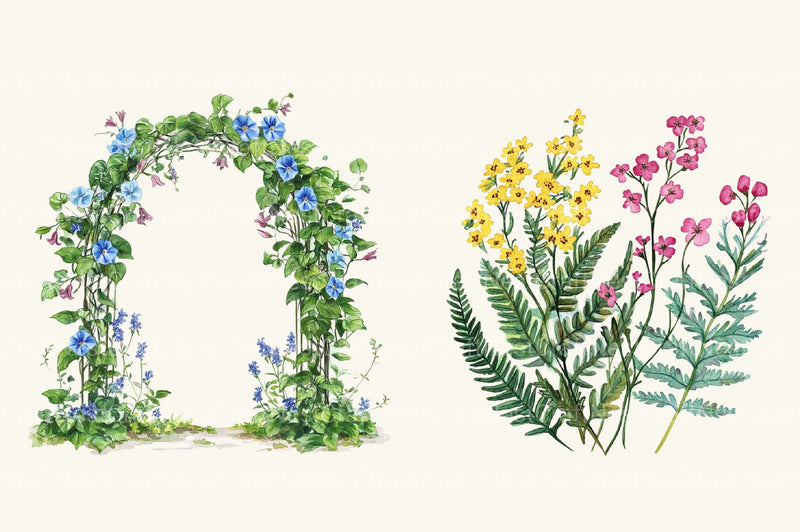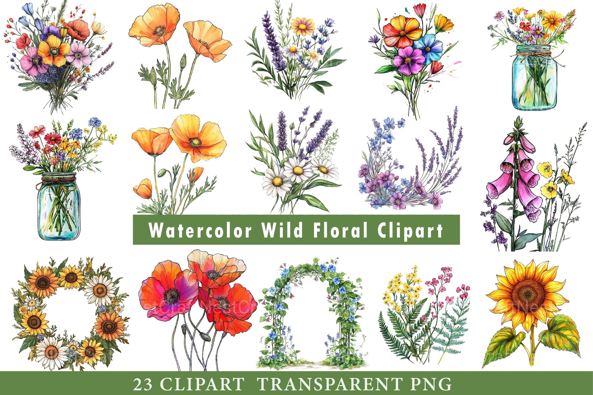 Thrive with this Wild Floral Clipart Bundle, featuring wildflower designs, ideal for nature crafts.